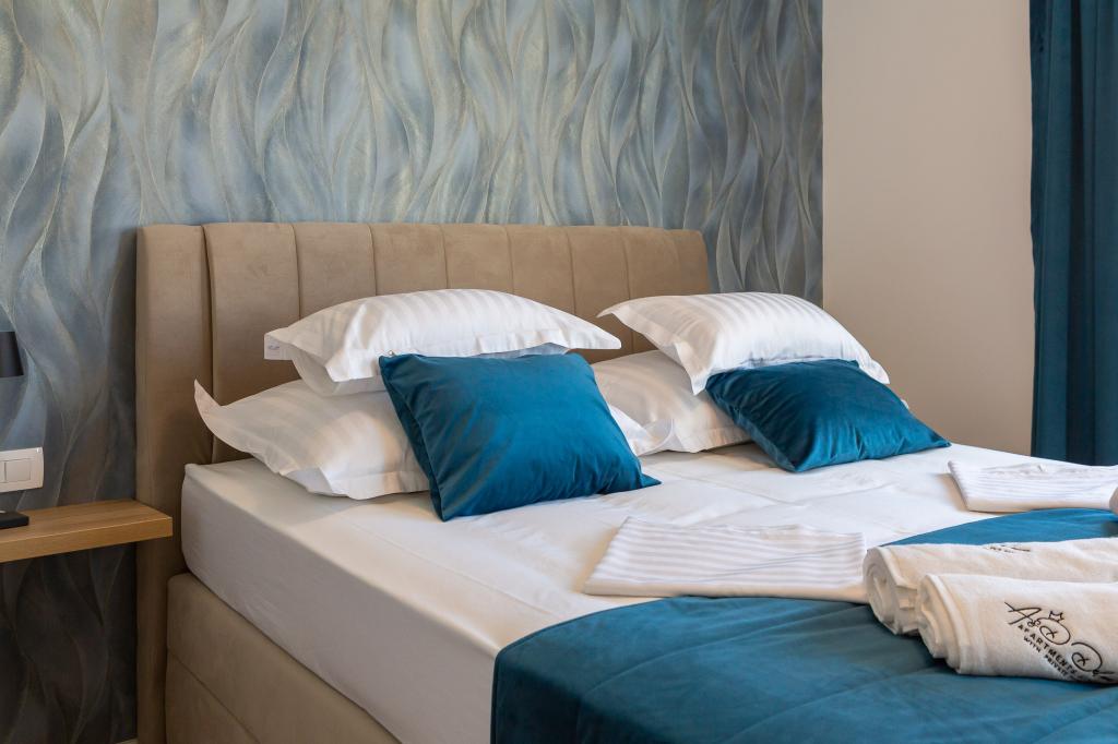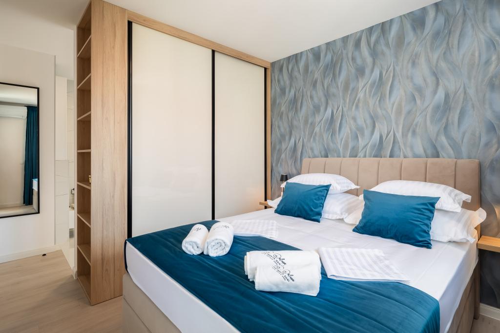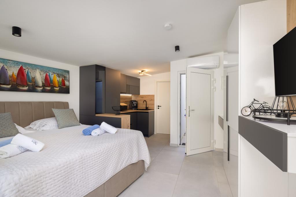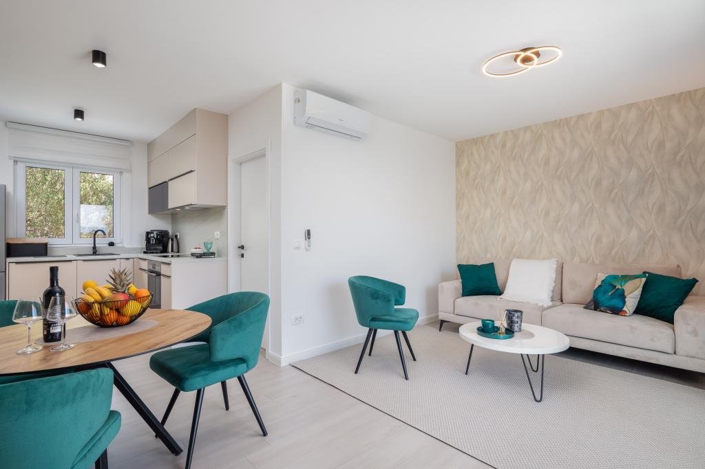 Przedstawiamy Państwu apartamenty A&D Deluxe z basenem, komfortowe jednostki noclegowe zlokalizowane w niewielkiej odległości od morza, zaledwie 300 metrów. Każdy apartament oferuje idealne połączenie komfortu i luksusu. Apartament A1 z 2 sypialniami, 2 łazienkami i przestronnym tarasem oferuje częściowy widok na morze i jest idealnym miejscem na wypoczynek dla rodzin lub małych grup. Dodatkowo goście mają bezpośredni dostęp do basenu, co pozwala cieszyć się poczęstunkiem i dodatkową rozrywką. Apartament A2, również z 2 sypialniami i 2 łazienkami, ma również dostęp do basenu, umożliwiając gościom dodatkową zabawę i relaks. Apartament A3 z jedną sypialnią i łazienką ma również dostęp do basenu i jest idealny dla par lub mniejszych rodzin szukających relaksujących wakacji w pobliżu morza. Wszystkie apartamenty są w pełni wyposażone, m.in. w kuchnie, prywatny parking, klimatyzatory i telewizory Smart TV, zapewniając komfort i wygodę podczas pobytu. Ciesz się luksusem prywatnego basenu i bliskością pięknych plaż w tych apartamentach.