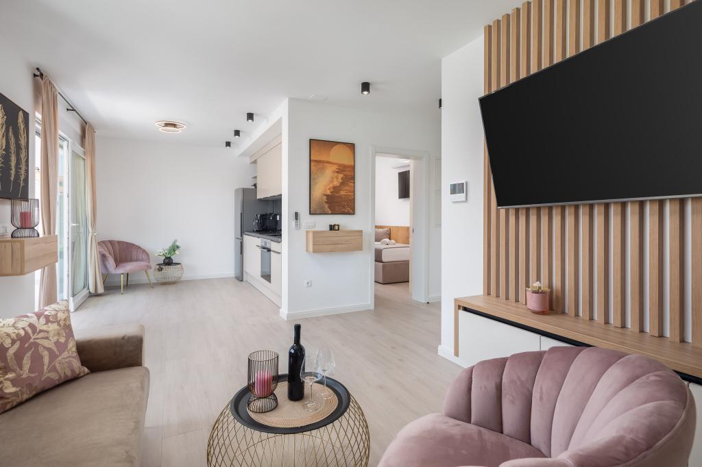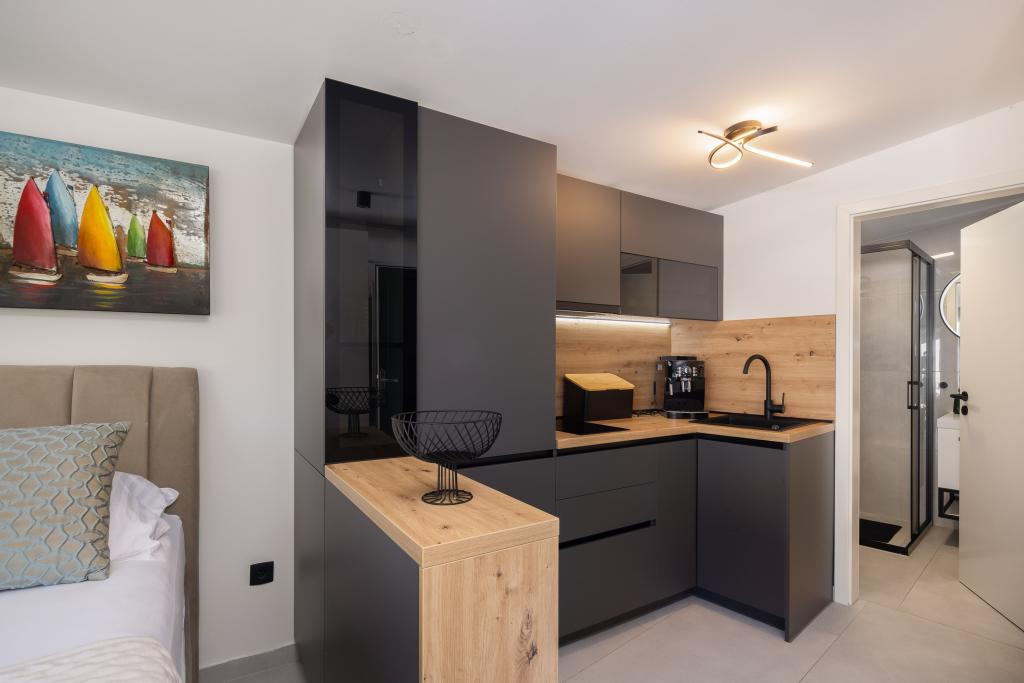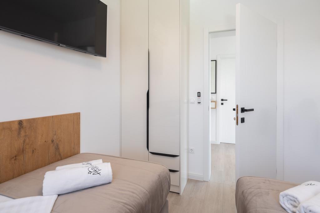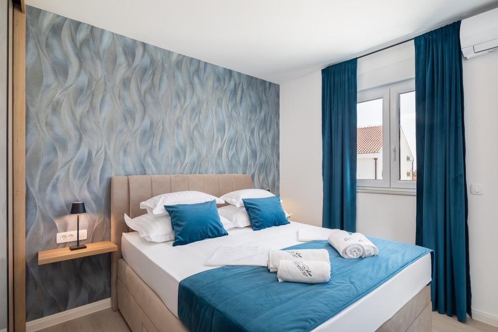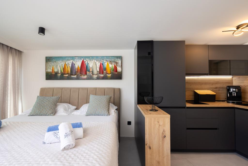 Przedstawiamy Państwu apartamenty A&D Deluxe z basenem, komfortowe jednostki noclegowe zlokalizowane w niewielkiej odległości od morza, zaledwie 300 metrów. Każdy apartament oferuje idealne połączenie komfortu i luksusu. Apartament A1 z 2 sypialniami, 2 łazienkami i przestronnym tarasem oferuje częściowy widok na morze i jest idealnym miejscem na wypoczynek dla rodzin lub małych grup. Dodatkowo goście mają bezpośredni dostęp do basenu, co pozwala cieszyć się poczęstunkiem i dodatkową rozrywką. Apartament A2, również z 2 sypialniami i 2 łazienkami, ma również dostęp do basenu, umożliwiając gościom dodatkową zabawę i relaks. Apartament A3 z jedną sypialnią i łazienką ma również dostęp do basenu i jest idealny dla par lub mniejszych rodzin szukających relaksujących wakacji w pobliżu morza. Wszystkie apartamenty są w pełni wyposażone, m.in. w kuchnie, prywatny parking, klimatyzatory i telewizory Smart TV, zapewniając komfort i wygodę podczas pobytu. Ciesz się luksusem prywatnego basenu i bliskością pięknych plaż w tych apartamentach.