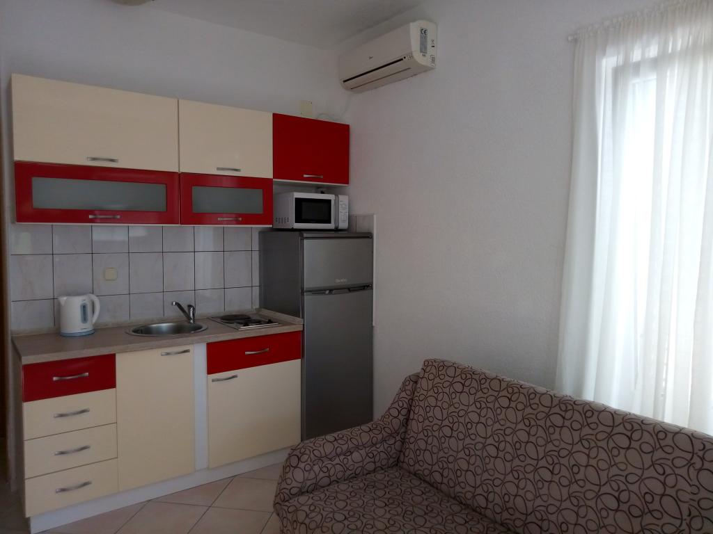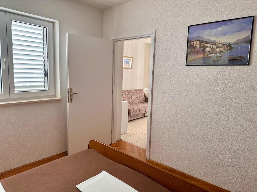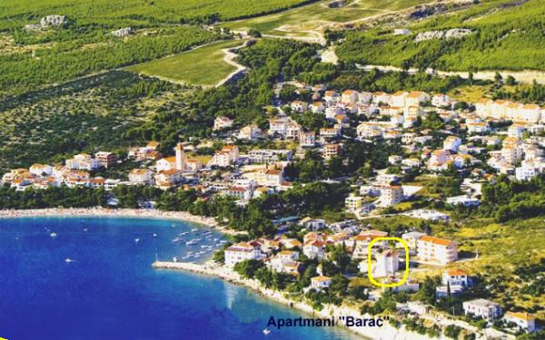 Apartamenty Barać znajdują się w cichej okolicy, mają piękny widok na morze i znajdują się około 150 metrów od centrum miasta i długiej kamienistej plaży. W domu oferujemy apartamenty typu studio i apartamenty z oddzielną sypialnią, kategoria trzy gwiazdki. Wszystkie apartamenty są klimatyzowane, posiadają osobną łazienkę, kuchnię, telewizję satelitarną oraz bezprzewodowy Internet. Kuchnie wyposażone są w lodówkę oraz standardowe przybory kuchenne i naczynia, istnieje również możliwość korzystania z grilla na świeżym powietrzu. Dobry wybór dla wszystkich, którzy chcą zamieszkać w cichym otoczeniu, blisko wymarzonej plaży.