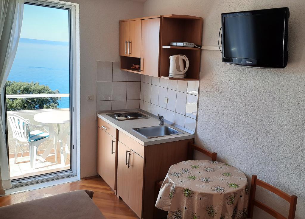 Apartament 2+2 jest bardzo komfortowy. Mamy wszystko , co potrzeba do szczęścia...dobre wyposażenie, a co najważniejsze piękne widoki na góry i morze. Podziwiać wschód i zachód słońca popijając winko na tarasie to jest to na co czekaliśmy..No i wróciliśmy tu znów.... ten sam pokój, ten sam widok i wspaniałe wspomnienia. Właściciele są bardzo mili i pomocni, pokoje w wysokim standardzie czystości...Tu naprawdę jest wszystko...oprocz standardowego wyposażenia są dostepne ręczniki, suszarka do wlosow, żelazko, czyli wszystko to , co by chciało się zabrać ze sobą, a nie ma już miejsca w aucie.