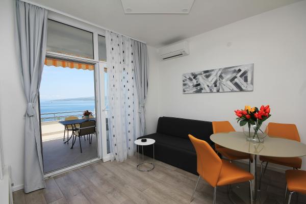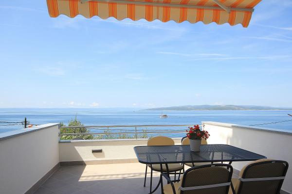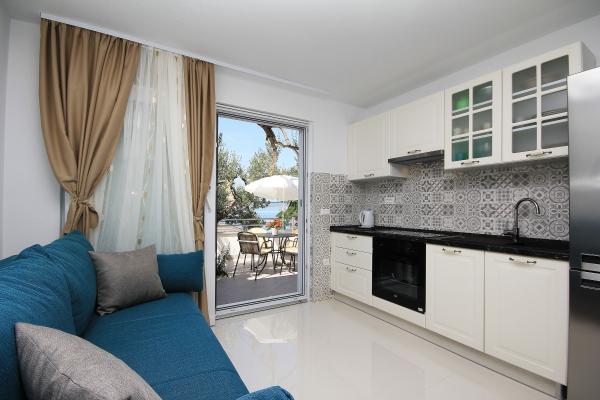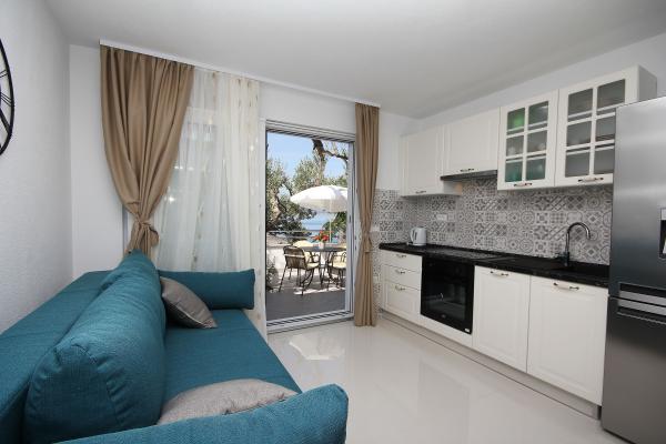 Ładnie urządzone apartamenty w spokojnej miejscowości Dalmacji, położony tuż przy morzu; Główna plaża (żwirowa) jest od domu 20 m, a tuż pod domem jest plaża skalista