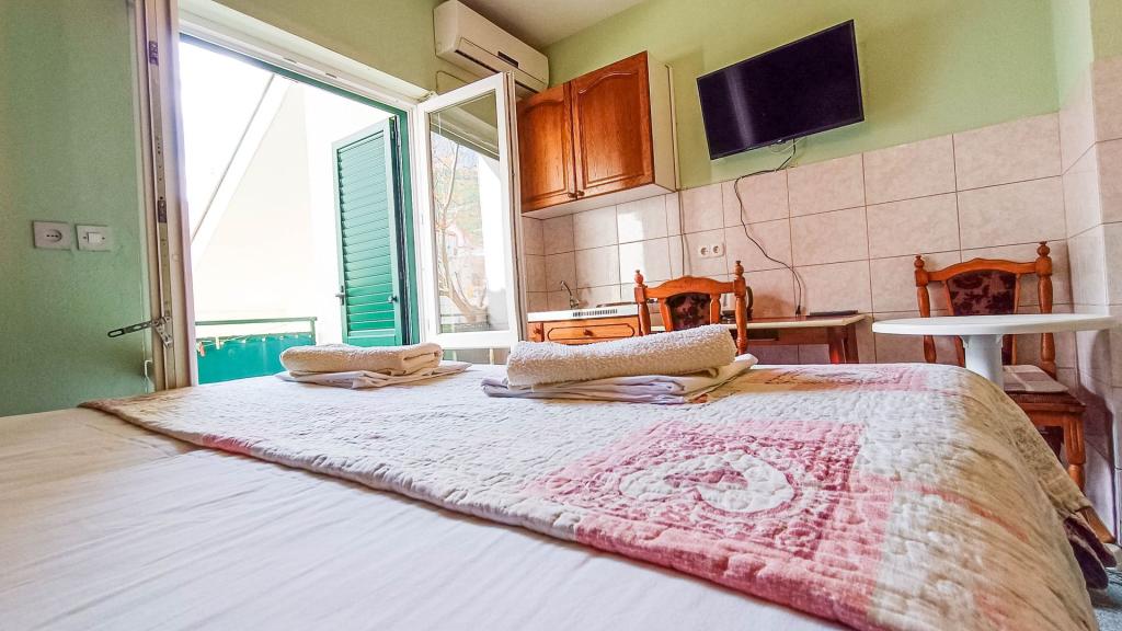Kwatera, którą dostaliśmy, nie była sprzątana przed naszym przyjazdem, na wszystkich ścianach pajęczyny i kurz. Meble są stare i zniszczone. W obiekcie nie ma WiFi, chociaż jest powiedziane, że jest. Nie ma telewizji satelitarnej, choć jest powiedziane, że mają kanały satelitarne. Mieliśmy 10 kanałów krajowych z zakłóceniami, więc ich też nie mogliśmy oglądać. Klimatyzator nie działa, tzn. wydajność chłodzenia jest minimalna. Miejsce parkingowe jest zapewnione, ale nie jest przeznaczone do korzystania z pojazdu podczas wakacji, ponieważ inni najemcy parkują za tobą, więc nie możesz parkować. Krótko mówiąc, dla kogoś, kto jest dość elastyczny, jest to ostatni wybór na przyszłe wakacje...