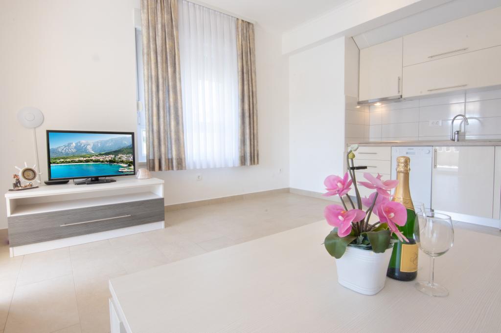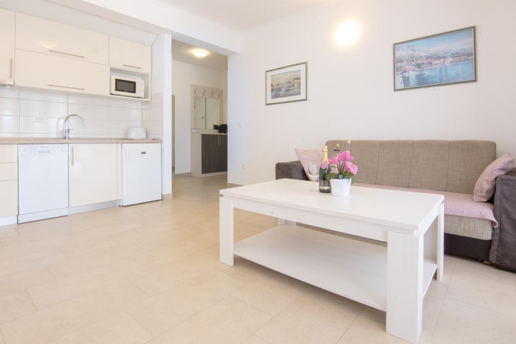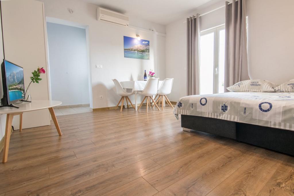 W pełni wyposażone apartamenty Marinko znajdują się w centrum Promajna, zaledwie 30 m od plaży i morza, 100 m od sklepu, rynku i poczty. Apartamenty mają własne parkingi obok budynku. Plaża ma naturalny odcień i małe kamyki, co jest idealne dla rodzin z małymi dziećmi.