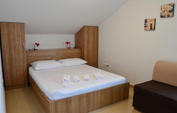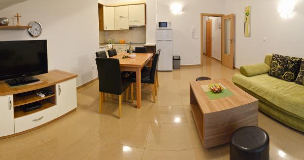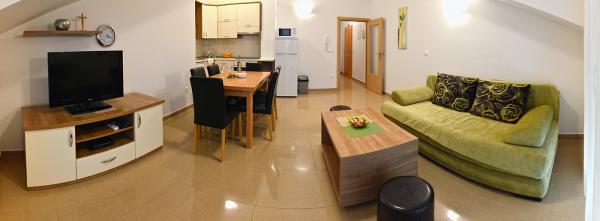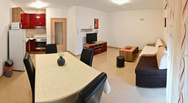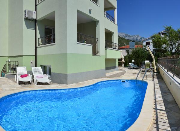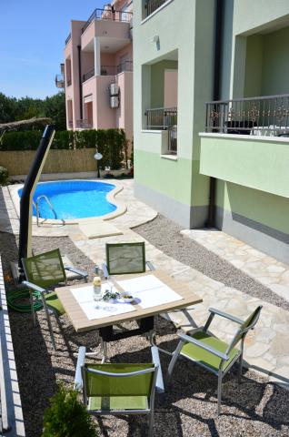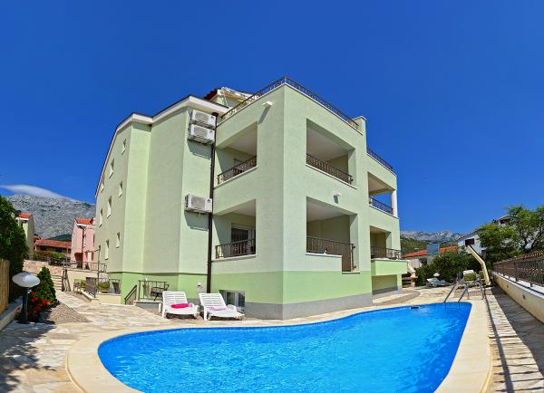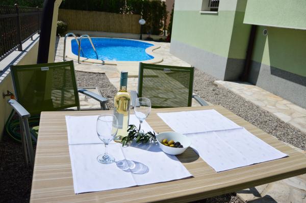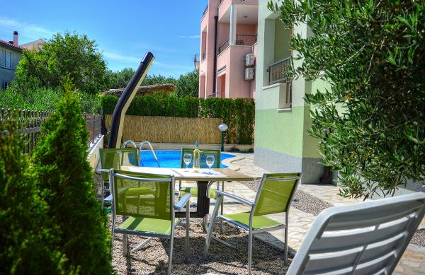 Mieszkaliśmy w mieszkaniu 2+2 w piwnicy. Wszystko pięknie czyste, nowe, w pełni wyposażone. Wspięliśmy się po schodach i mogliśmy wskoczyć prosto do basenu. Basen był piękny, czysty. Gospodyni jest bardzo miła. Morze jest blisko, 3 minuty spacerem od domu. Wszystko w 1*. Chętnie tu wrócimy!