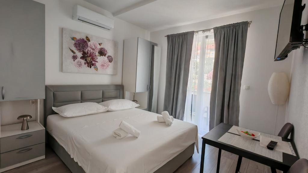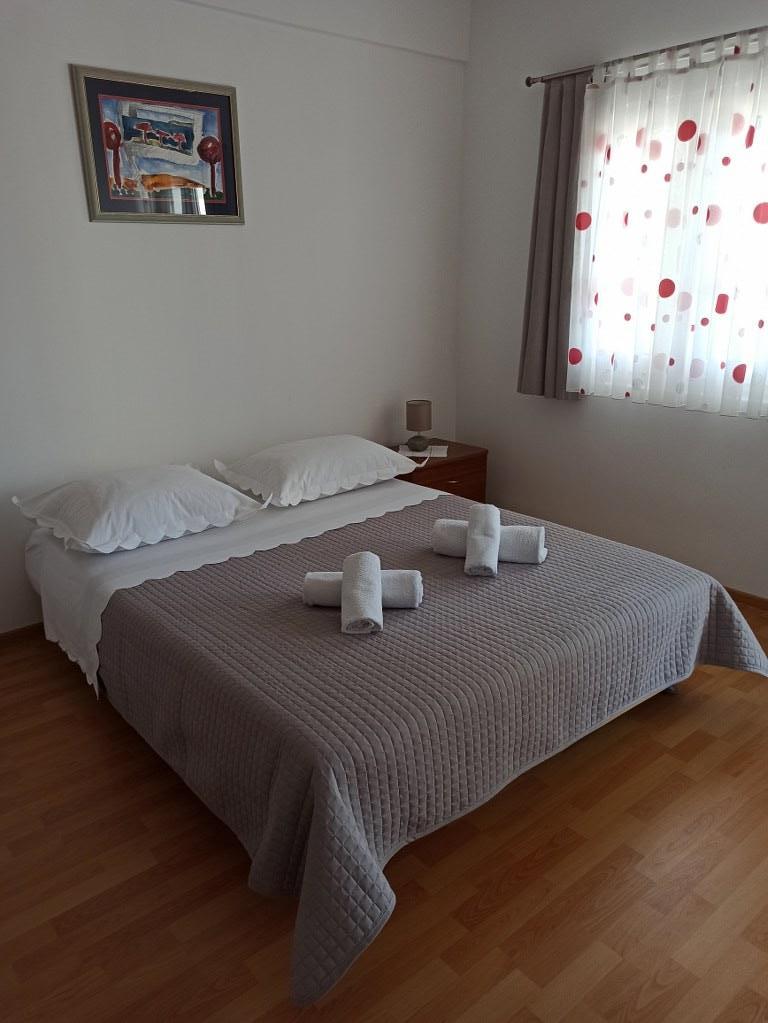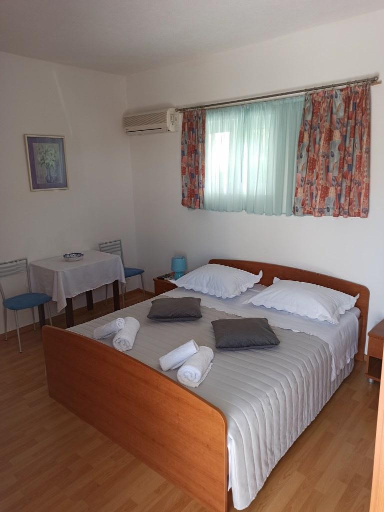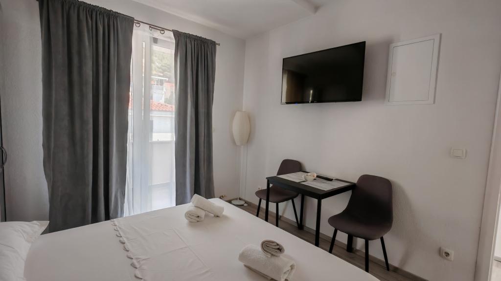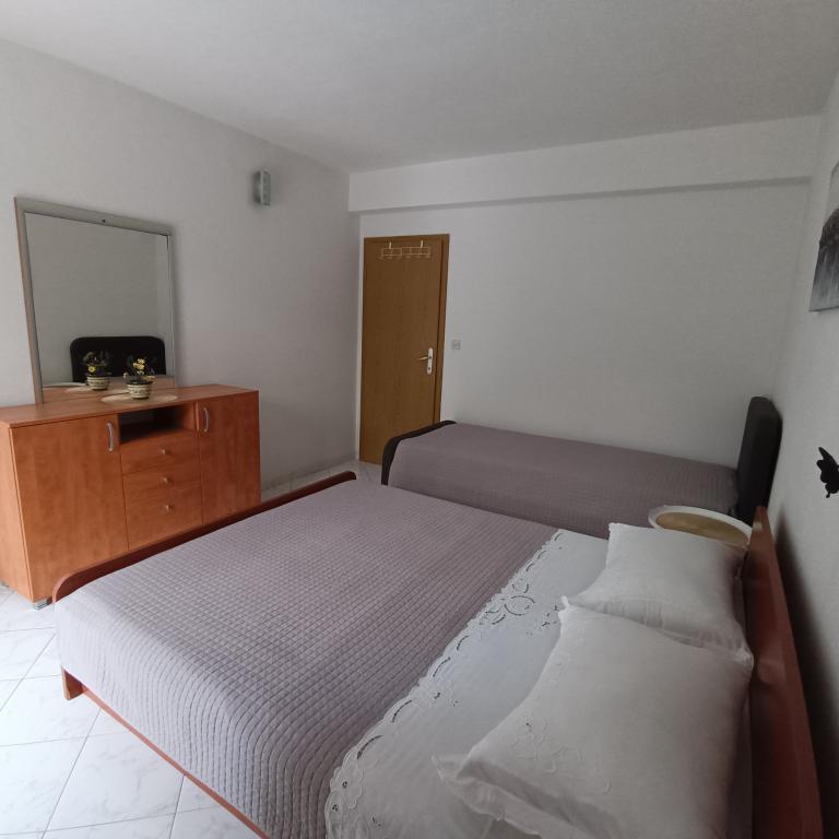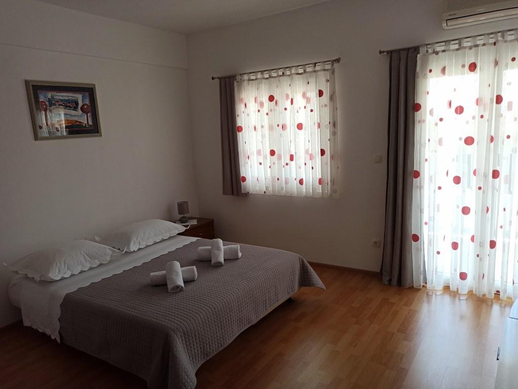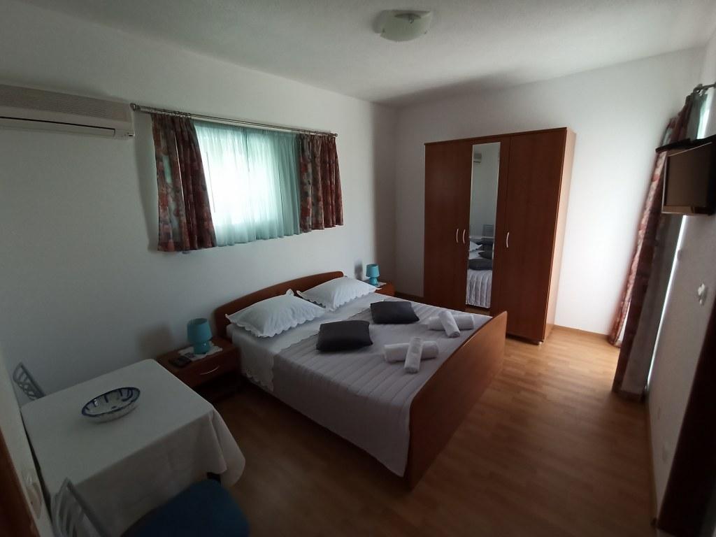 Przebywaliśmy w pokoju dwu osobowym z łazienką, w pełni wyposażoną kuchnią oraz balkonem z bocznym widokiem zarówno na morze jak i na góry. Pokój bardzo czysty i schludny, bez żadnych zastrzeżeń. Właścicielka dostępna na miejscu, bardzo kontaktowa i pomocna nie tylko w sprawach zakwaterowania ale również doradziła gdzie dobrze i tanio zjeść, gdzie kupić najlepszą domową oliwę itp. W przyszłym roku napewno również zagościmy tym razem ze znajomymi.
