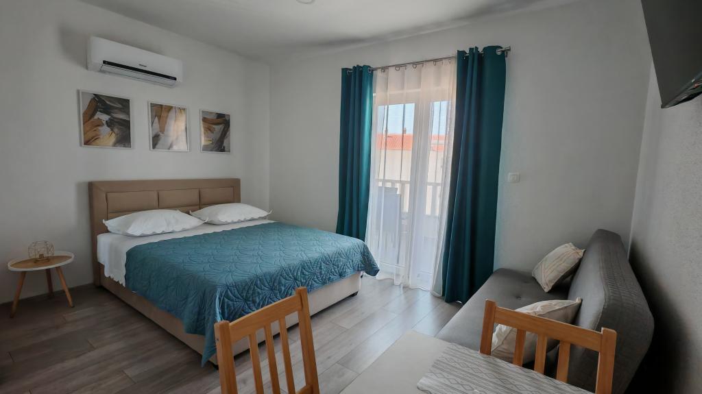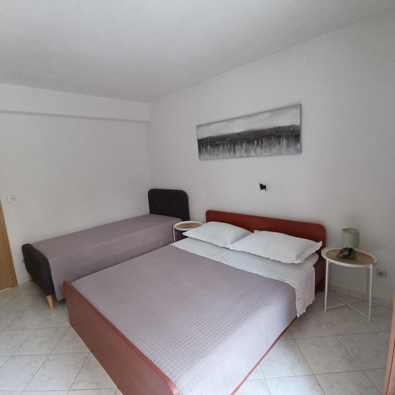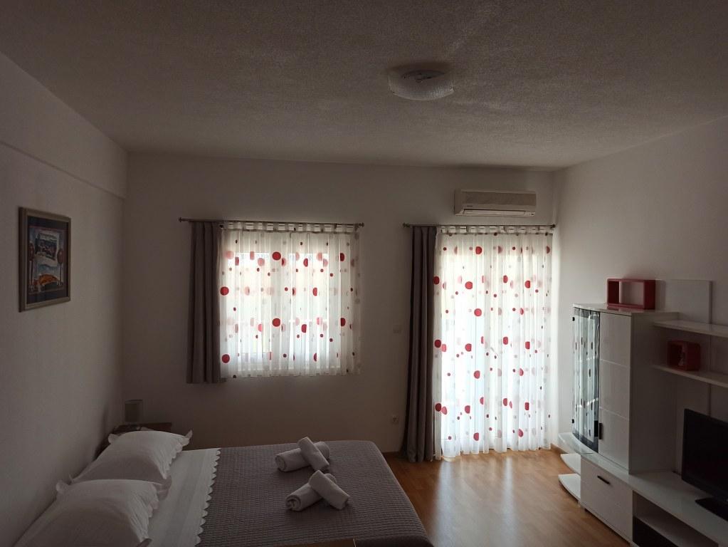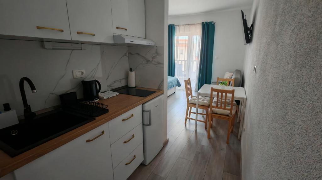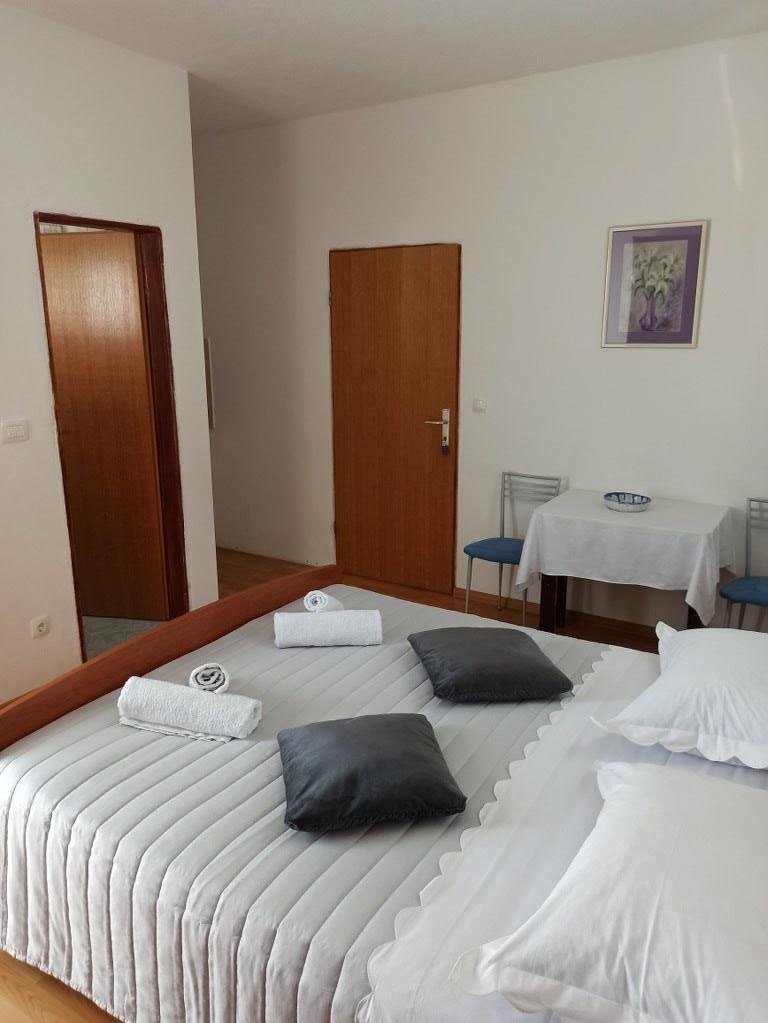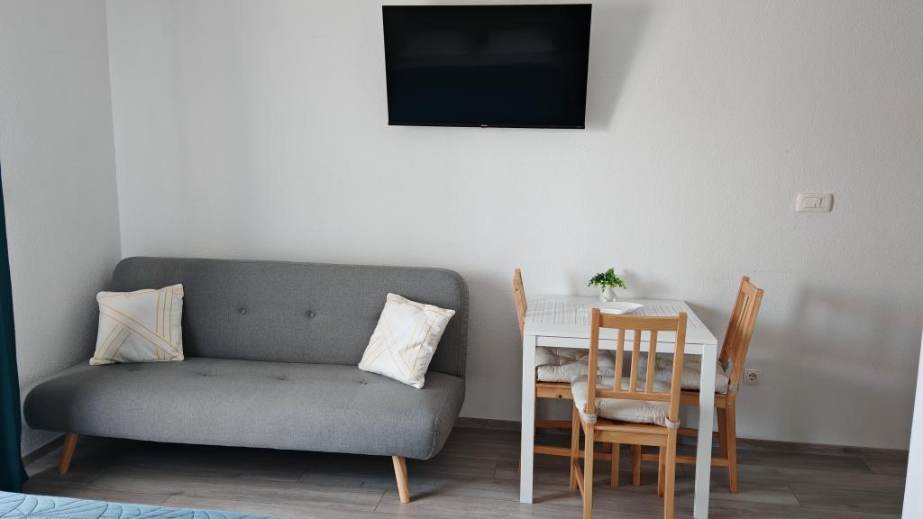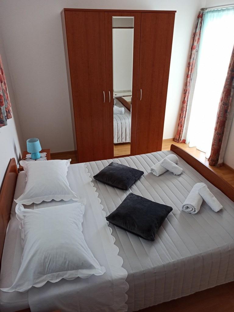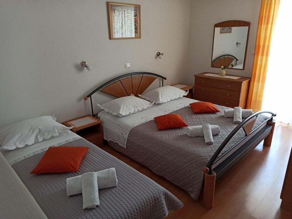 Przebywaliśmy w pokoju dwu osobowym z łazienką, w pełni wyposażoną kuchnią oraz balkonem z bocznym widokiem zarówno na morze jak i na góry. Pokój bardzo czysty i schludny, bez żadnych zastrzeżeń. Właścicielka dostępna na miejscu, bardzo kontaktowa i pomocna nie tylko w sprawach zakwaterowania ale również doradziła gdzie dobrze i tanio zjeść, gdzie kupić najlepszą domową oliwę itp. W przyszłym roku napewno również zagościmy tym razem ze znajomymi.