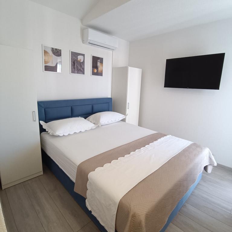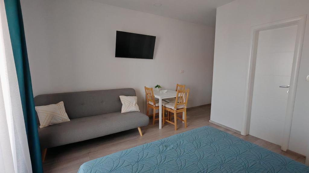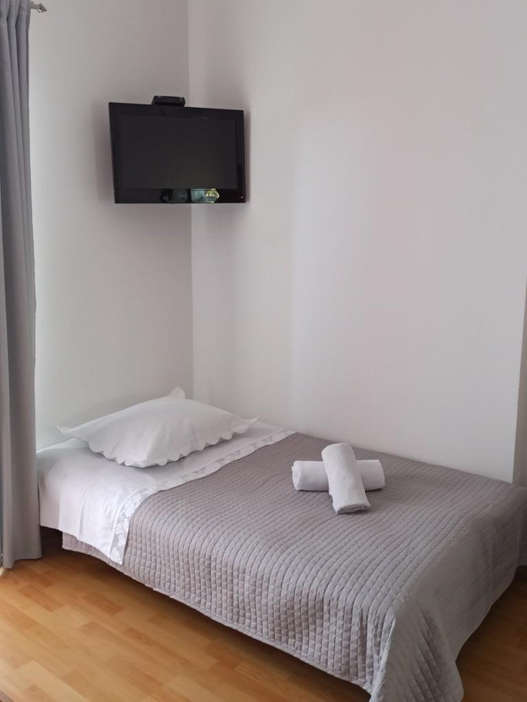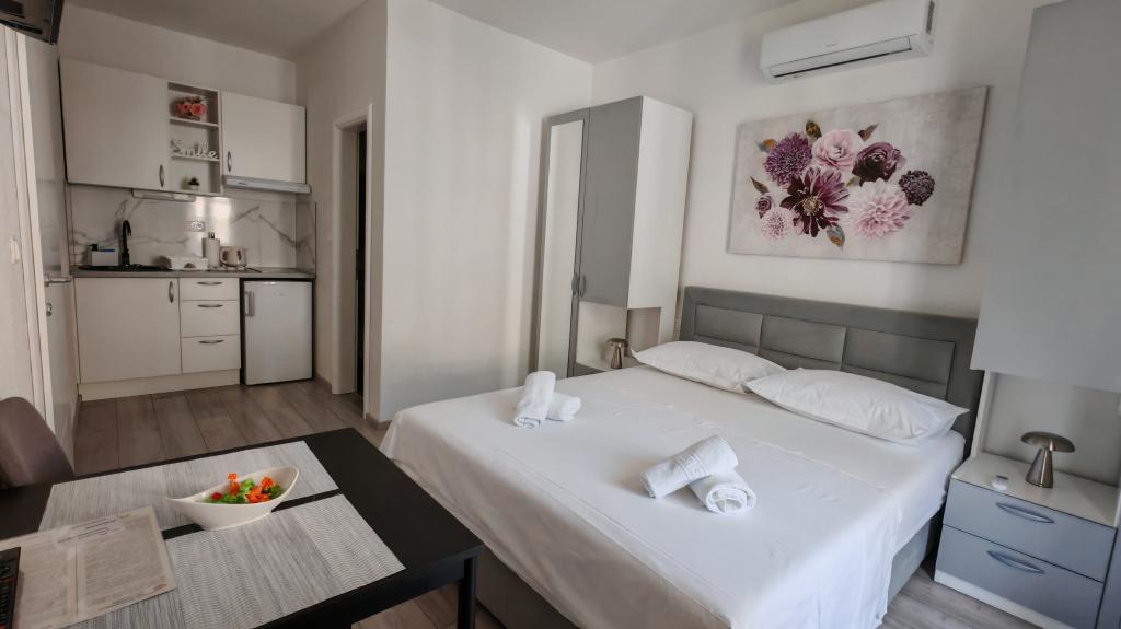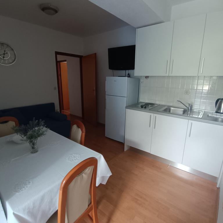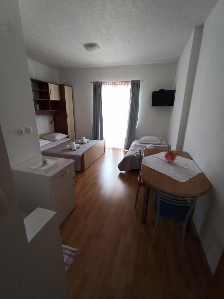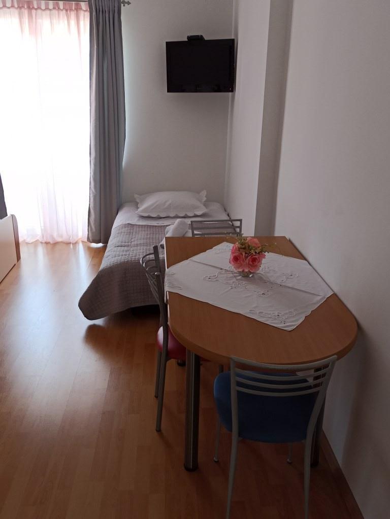 Przebywaliśmy w pokoju dwu osobowym z łazienką, w pełni wyposażoną kuchnią oraz balkonem z bocznym widokiem zarówno na morze jak i na góry. Pokój bardzo czysty i schludny, bez żadnych zastrzeżeń. Właścicielka dostępna na miejscu, bardzo kontaktowa i pomocna nie tylko w sprawach zakwaterowania ale również doradziła gdzie dobrze i tanio zjeść, gdzie kupić najlepszą domową oliwę itp. W przyszłym roku napewno również zagościmy tym razem ze znajomymi.