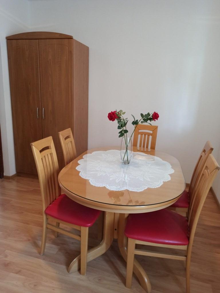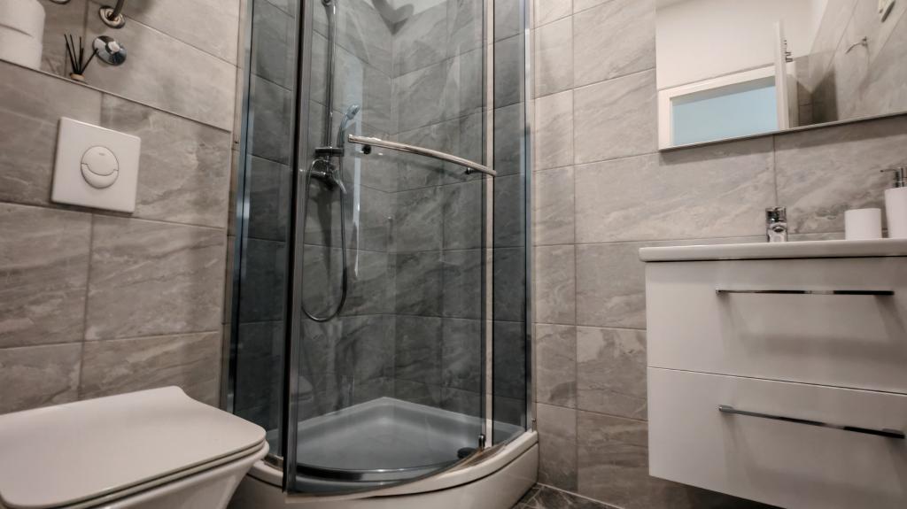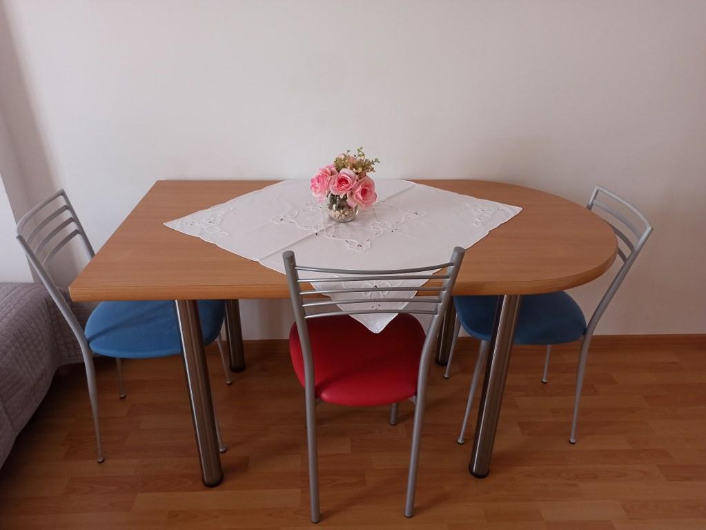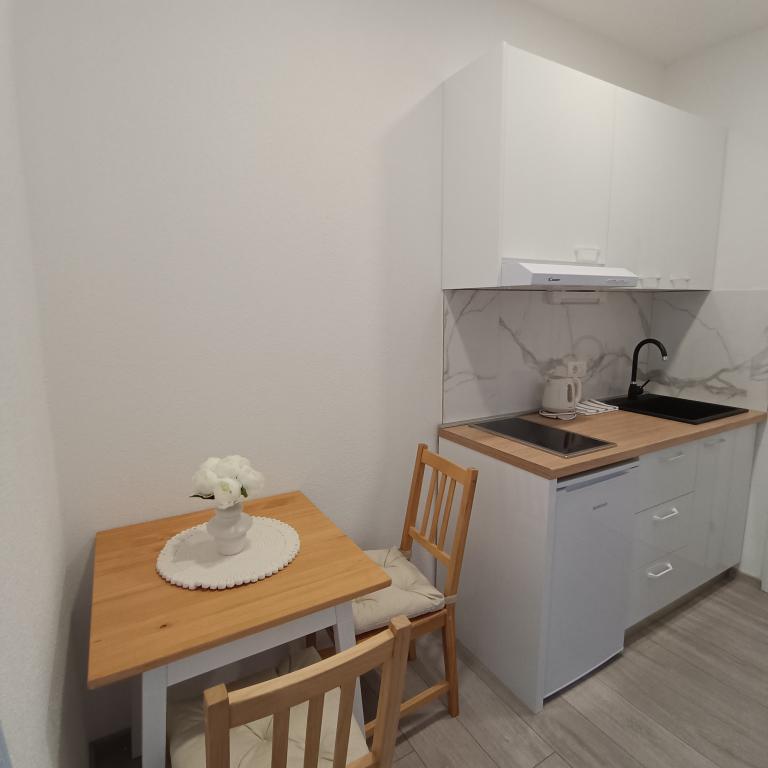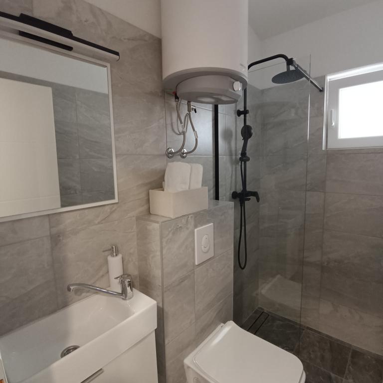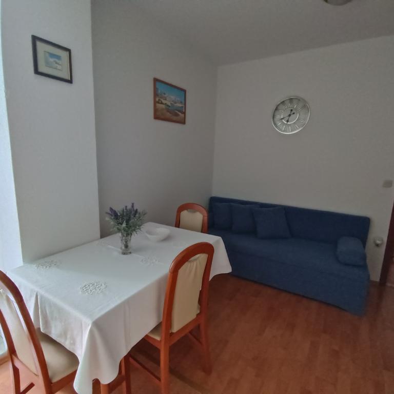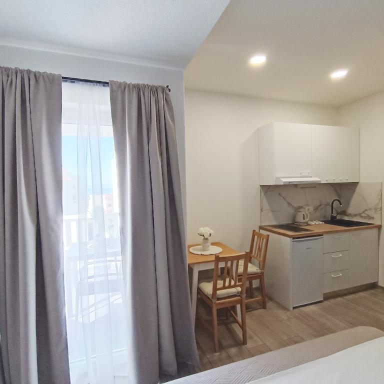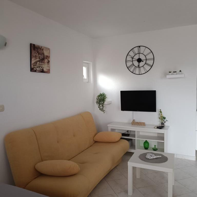 Przebywaliśmy w pokoju dwu osobowym z łazienką, w pełni wyposażoną kuchnią oraz balkonem z bocznym widokiem zarówno na morze jak i na góry. Pokój bardzo czysty i schludny, bez żadnych zastrzeżeń. Właścicielka dostępna na miejscu, bardzo kontaktowa i pomocna nie tylko w sprawach zakwaterowania ale również doradziła gdzie dobrze i tanio zjeść, gdzie kupić najlepszą domową oliwę itp. W przyszłym roku napewno również zagościmy tym razem ze znajomymi.
