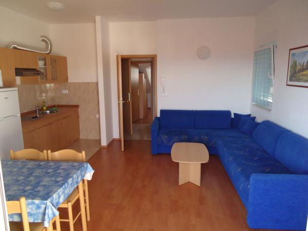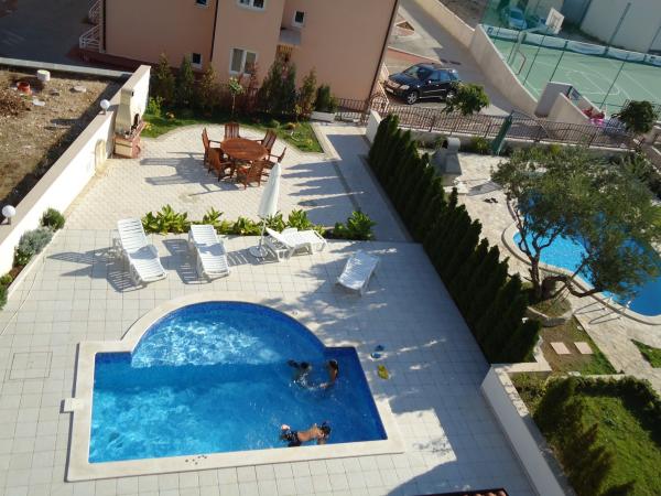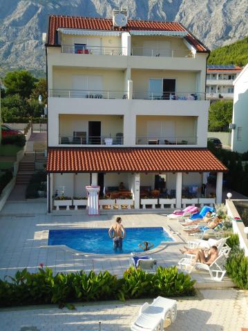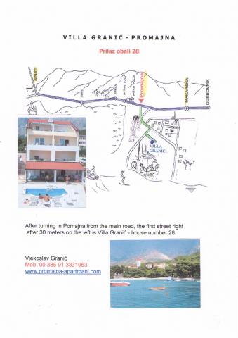 Willa Granić położona jest w turystycznej miejscowości Promajna, w pięknie zagospodarowanym otoczeniu, zaledwie 100 metrów od piaszczystej plaży z lasem sosnowym, i jest idealna dla rodzin z dziećmi. Willa posiada własny basen, duży ogród i zamknięty parking. Każdy apartament posiada duży taras z widokiem na morze, wyposażony w przestronny stół i krzesła. W pobliżu znajduje się 6 restauracji, sklepy i place zabaw dla dzieci. Obok domu znajduje się boisko do koszykówki i mini piłki nożnej, z których można korzystać bezpłatnie.