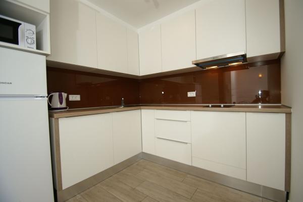 Apartamenty w nowo wybudowanym budynku, 60 metrów od pięknej kamienistej plaży z naturalnym cieniem. Apartamenty są w pełni wyposażone dla przyjemnego pobytu. Parking znajduje się na dziedzińcu budynku. Wszystkie apartamenty mają otwarty widok na morze. W pobliżu znajduje się zielony targ, piekarnia i bazar. Plaża oddalona jest od obiektu o 80 metrów lub 2 minuty spacerem.