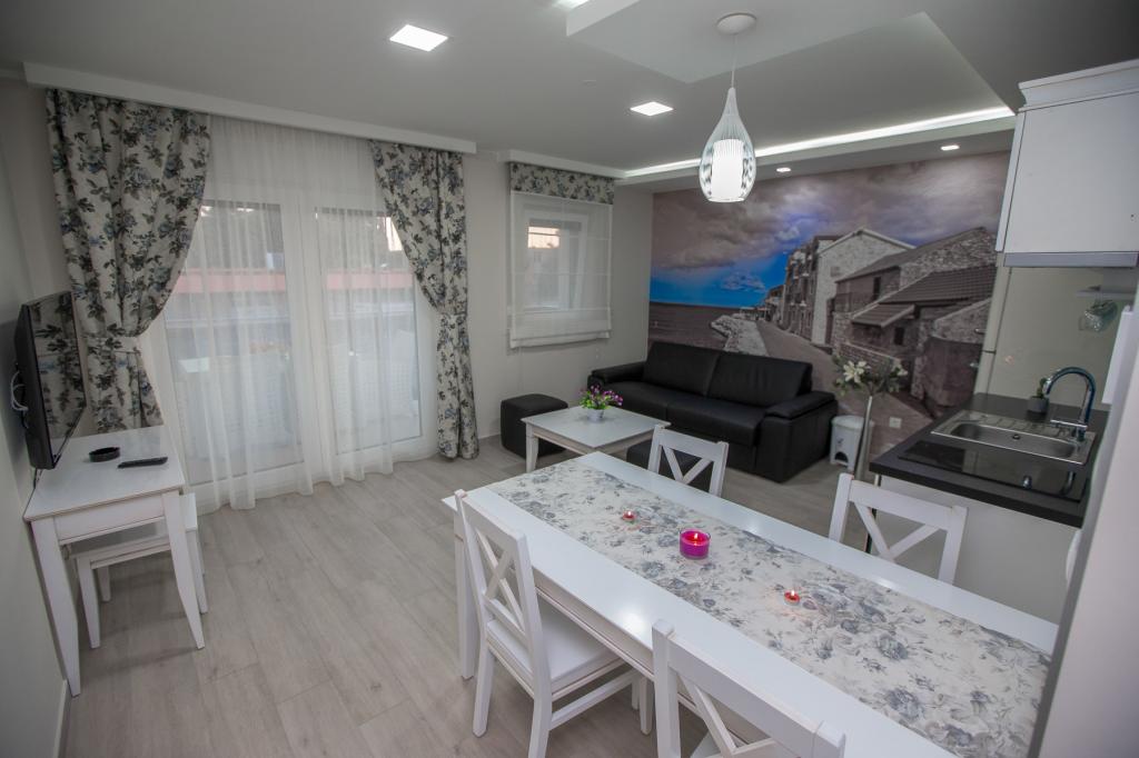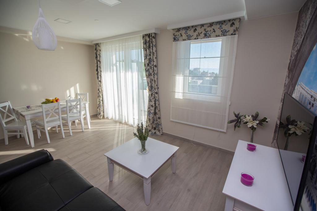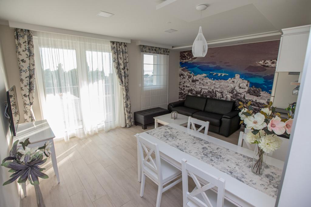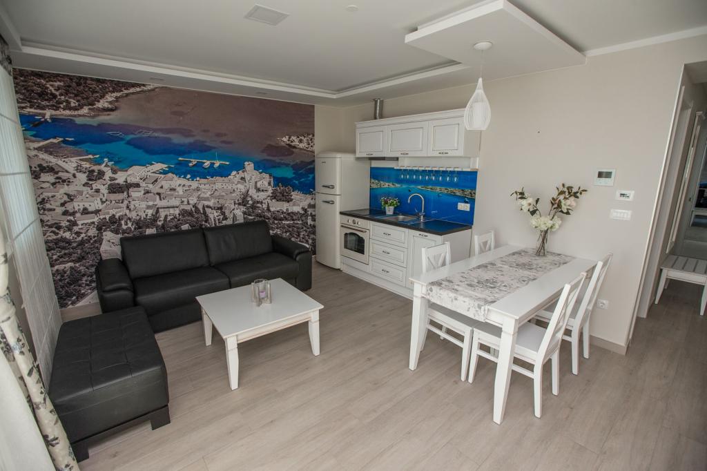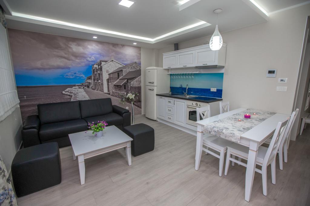 Willa Rita położona jest w cichym i pięknym miejscu Promajna. Willa znajduje się 150 m od plaży i centrum. Oferuje on wannę z hydromasażem (jacuzzi), saunę i siłownię. Dostępne są apartamenty typu studio dla 2 osób i apartamenty dla 4 osób. Wszystkie apartamenty posiadają kuchnię. W budynku na parterze znajduje się recepcja, w której goście mogą uzyskać wszelkie informacje związane z pobytem, a nawet usługami. Goście mogą zrelaksować się w recepcji przy filiżance kawy, aby rozpocząć swój pobyt. W budynku znajduje się miejsce parkingowe. Przeżyj piękne i niezapomniane rodzinne wakacje z Apartamentami Villa Rita!
