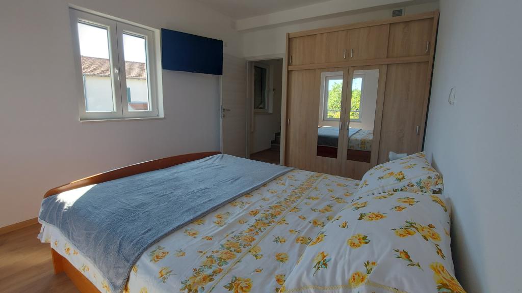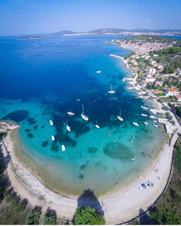 Apartament, a właściwie pierwsze piętro domu, składa się z jednej sypialni z łóżkiem małżeńskim, drugiego pokoju z dwoma pojedynczymi łóżkami oraz sofy w salonie. Wyposażenie obejmuje klimatyzację, telewizję satelitarną, zmywarkę, pralkę, odtwarzacz DVD, nielimitowany internet Wi-Fi, kuchnię z kuchenką, małą lodówką i większą z zamrażarką, ekspresem do kawy, kuchenką mikrofalową i czajnikiem... Taras o powierzchni około 4 metrów kwadratowych wyposażony jest w stół i 4 krzesła. Jeśli byłeś już w Šepurinie, znajdujemy się w pobliżu dużego kościoła, 100 metrów od morza. Apartament znajduje się 5 minut od centrum, więc jesteś wystarczająco daleko, aby nie słyszeć hałasu kawiarni i tłumów. Jeśli przyjeżdżasz samochodem, możesz zaparkować w Srimie, gdzie opłata za parking wynosi 5 euro za dobę. Jeśli przyjeżdżasz do Vodic lub Srimy, musisz zadzwonić do taksówki wodnej, a my podamy Ci dane kontaktowe. Jeśli przyjedziesz do Szybenika, regularna linia promowa do Šepuriny zajmuje godzinę, a podróż statkiem jest jeszcze przyjemniejsza dzięki rejsowi przez piękny Kanał Świętego Antoniego i wyspy zdobiące archipelag szybenicki. Podróż samochodem z Vodic zajmuje 15 minut, a do Srimy 5 minut.