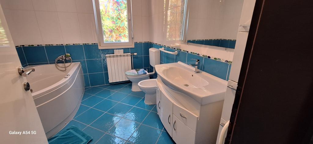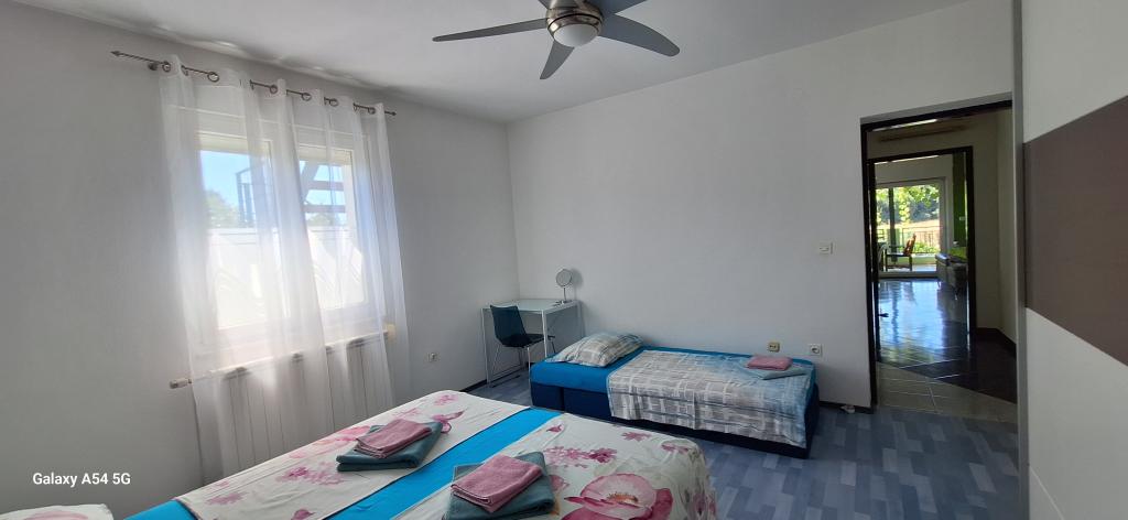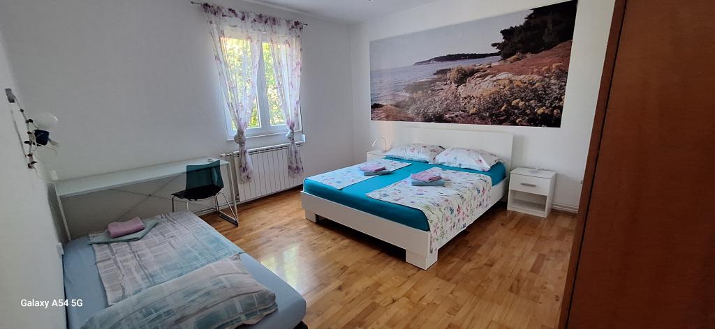 Odkryj prawdziwy luksus w naszym apartamencie Art w Puli, położonym na pięknej Istrii. Ten przestronny apartament o powierzchni 100 metrów kwadratowych pomieści do 6 osób. Składa się z 2 sypialni i 2 łazienek, idealnie zaprojektowanych z myślą o komforcie i relaksie. Parter domu ma powierzchnię 100 m² + balkon 29 m² + ogródek 600 m² z trampoliną. Goście mają dostęp do kuchni, jadalni, salonu, korytarza, 2 sypialni z łóżkiem małżeńskim i dostawką w każdej sypialni. Duża łazienka z wanną. Mała łazienka z prysznicem. Duży taras o powierzchni 20 m². Widok na las.