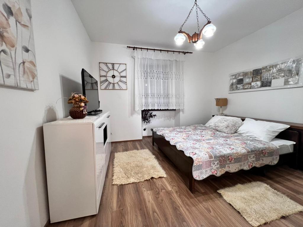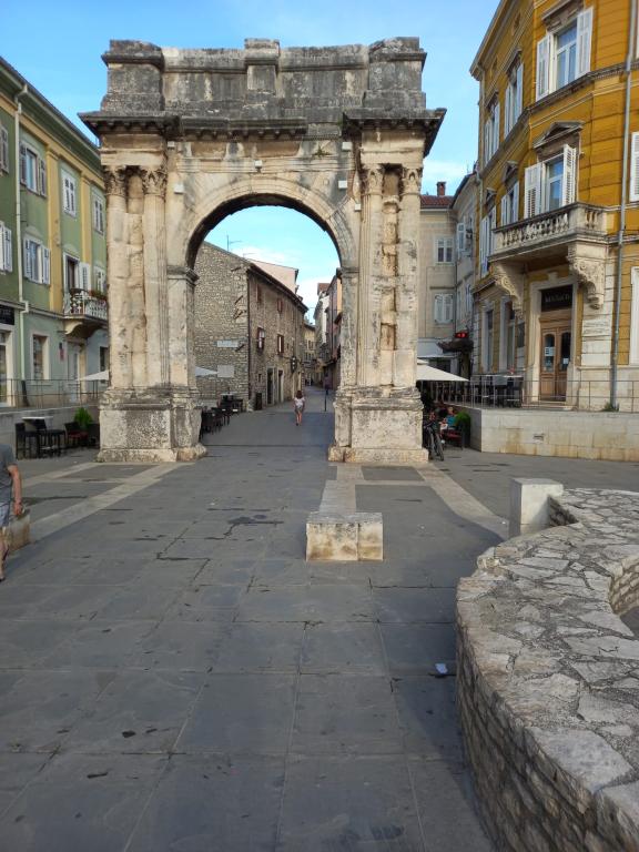 Apartament znajduje się w centrum Puli, w pobliżu Areny, w budynku mieszkalnym na 2 piętrze. Obiekt został odnowiony w 2024 roku. Jest w pełni wyposażony we wszystkie niezbędne udogodnienia zapewniające przyjemny pobyt. Składa się z pokoju (łóżko dwuosobowe, szafa z lustrem, komoda, szafka na buty, TV, żelazko, 2 krzesła, pościel, koc i ręczniki); kuchnie (szafki kuchenne, kuchenka, duża lodówka, stół, krzesła, klimatyzacja, mikrofalówka, czajnik, ekspres do kawy, toster, naczynia); łazienki (toaleta, prysznic, pralka, umywalka z lustrem, elektryczny grzejnik ścienny). Ponieważ obiekt znajduje się w centrum, dostęp do wszystkich udogodnień miejskich jest zapewniony. W okolicy znajdują się piekarnia, fast food, sklep spożywczy, kawiarnia Rock Cafe, salon fryzjerski i salon pielęgnacji zwierząt. Zwierzęta domowe są dozwolone, należy jednak dbać o ich higienę.