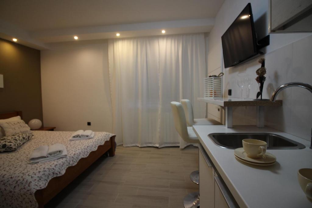 Villa ambiente znajduje się w spokojnej części Pješćana uvala (ślepej uliczce), prawie bez ruchu i hałasu, zaledwie 150 metrów od plaży i restauracji, a także wszystkich innych obiektów. Jesteśmy do dyspozycji naszych gości 24 godziny na dobę.