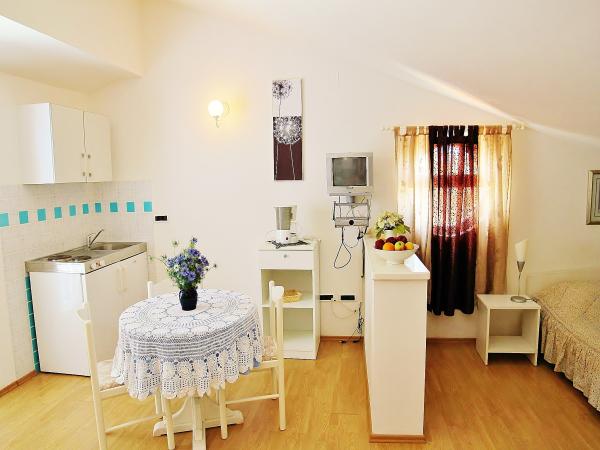 Apartamenty Villa Udovičić znajdują się niedaleko naturalnie różnorodnych plaż. Oferuje on 6 komfortowo wyposażonych apartamentów z pięknym widokiem, a niektóre z widokiem na morze. Apartamenty mają jedną lub dwie oddzielne sypialnie, salon, nowoczesną kuchnię, łazienkę, telewizję satelitarną i taras. Apartamenty są klimatyzowane; możliwość korzystania z Internetu i parkowania. Niedaleko mieszkania znajdują się promenady przez Forest Park, nad morzem, przystań, restauracje i fitness na świeżym powietrzu. We wsi jest kilka małych sklepów.