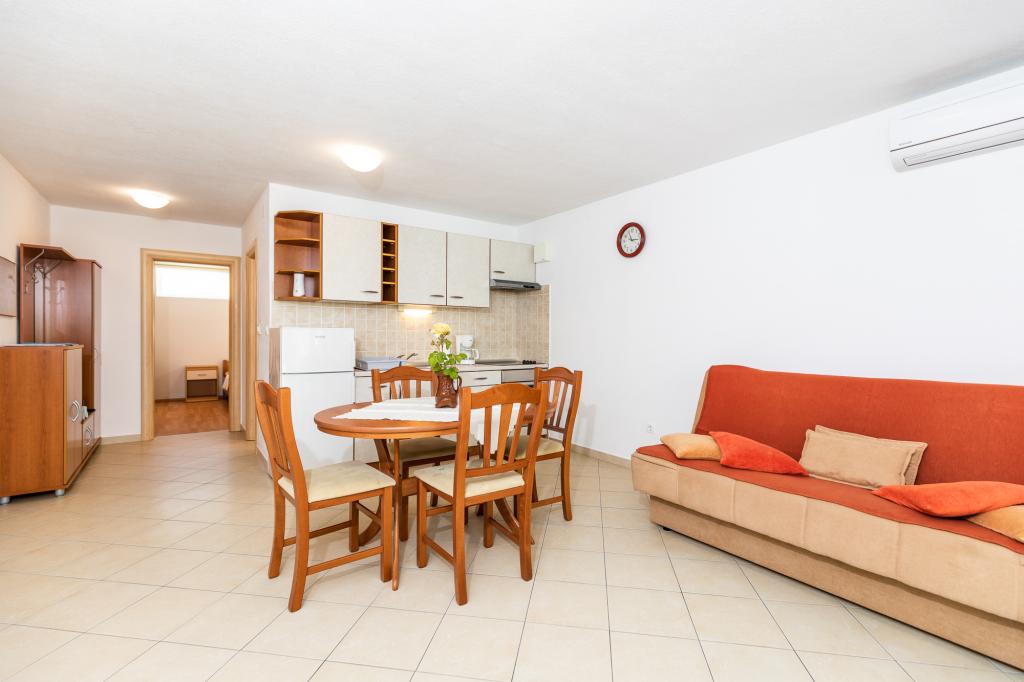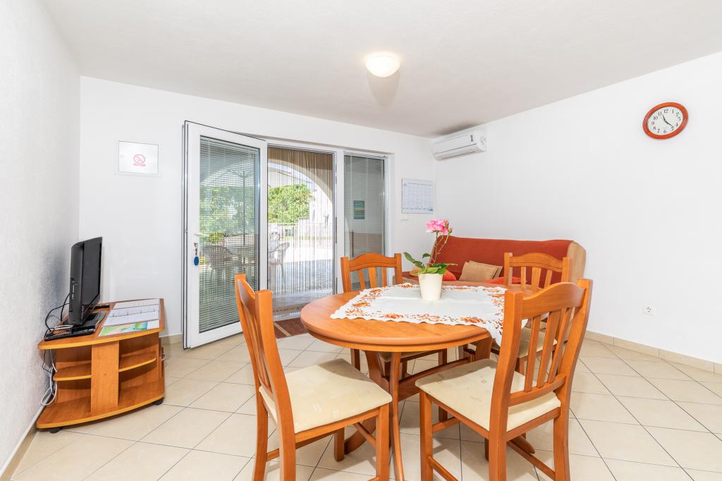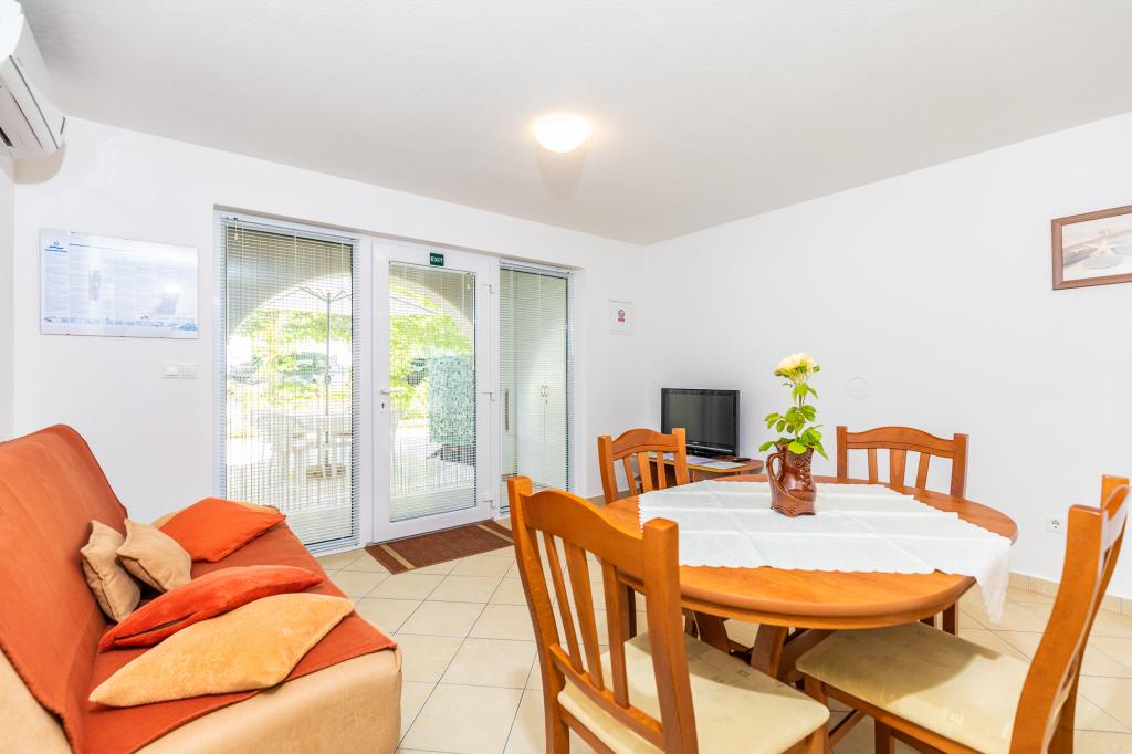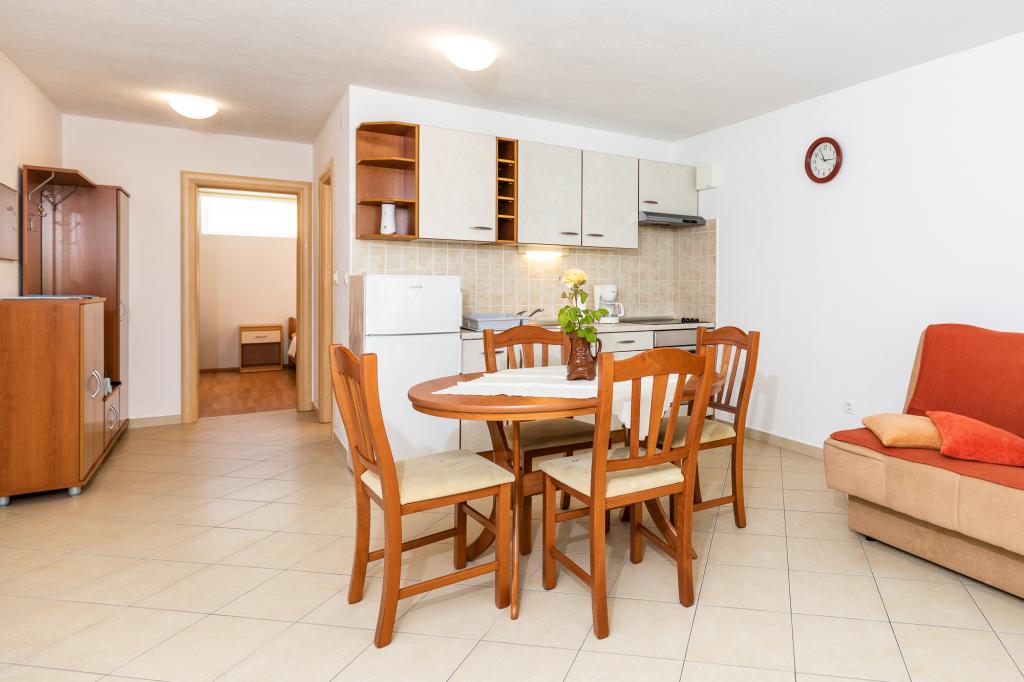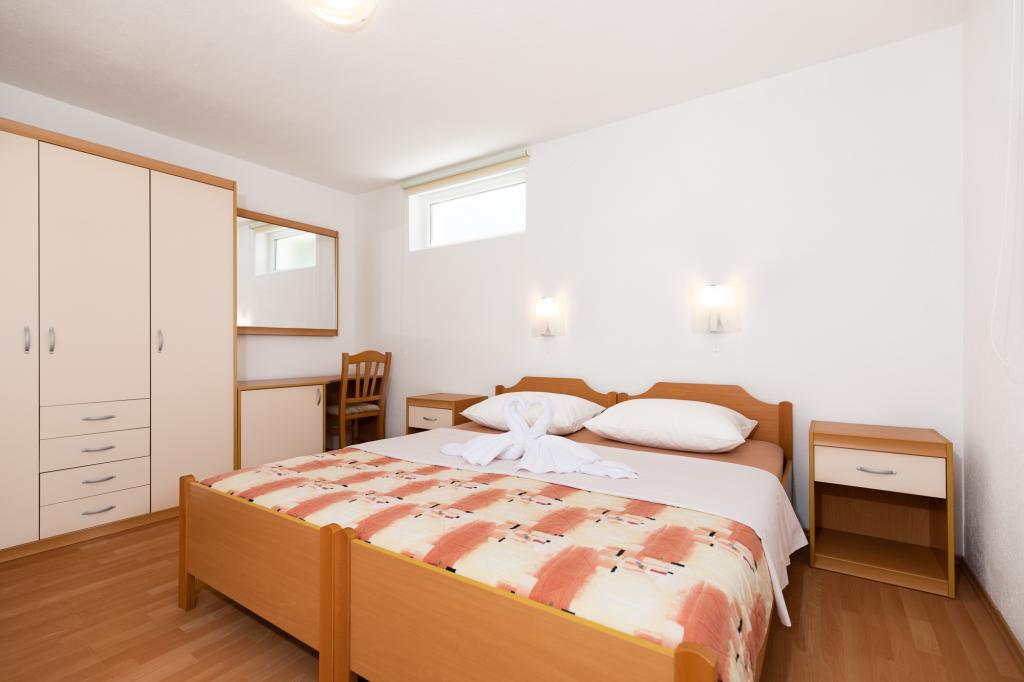 KwaterAby dokonać rezerwacji należy wpłacić zaliczkę w wysokości 100 € za pośrednictwem banku (IBAN), a pozostała część rachunku płatna gotówką po przyjeździe. Przyjazd do apartamentu możliwy jest po godzinie 14:00, a wyjazd do godziny 10:00. Podstawowa cena za apartament dotyczy pobytu 2 osób. Za każdą dodatkową osobę na dodatkowym łóżku cena wzrasta o 12 €/dzień (1 maja – 14 lipca, 21 sierpnia – 30 września) lub 15 €/dzień (15 lipca – 20 sierpnia). W każdym apartamencie znajduje się dodatkowe łóżko dla 2 osób. Dzieci do lat 3 – pobyt bezpłatny, jeśli nie korzystają z dodatkowego łóżka. Pobyt do 3 nocy zwiększa cenę usługi o 30%. Opłata klimatyczna jest wliczona w cenę.