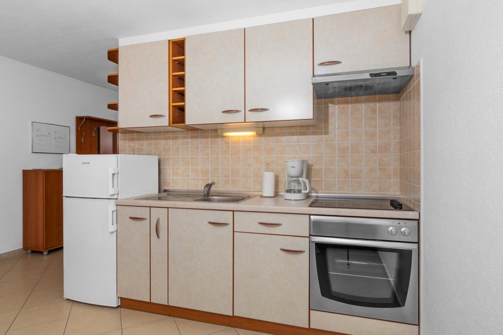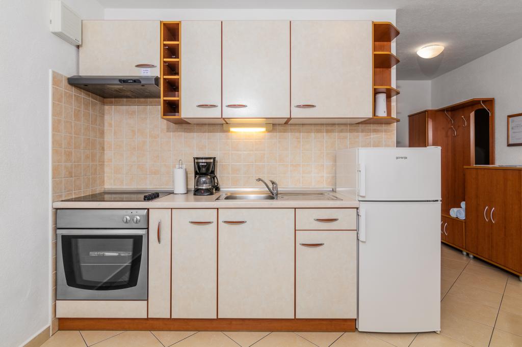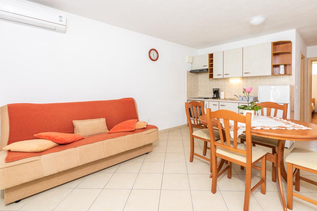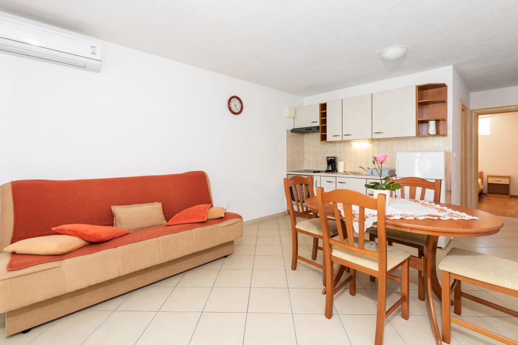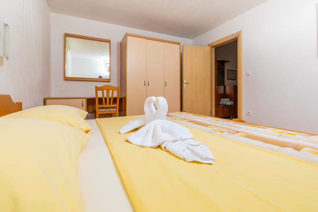 KwaterAby dokonać rezerwacji należy wpłacić zaliczkę w wysokości 100 € za pośrednictwem banku (IBAN), a pozostała część rachunku płatna gotówką po przyjeździe. Przyjazd do apartamentu możliwy jest po godzinie 14:00, a wyjazd do godziny 10:00. Podstawowa cena za apartament dotyczy pobytu 2 osób. Za każdą dodatkową osobę na dodatkowym łóżku cena wzrasta o 12 €/dzień (1 maja – 14 lipca, 21 sierpnia – 30 września) lub 15 €/dzień (15 lipca – 20 sierpnia). W każdym apartamencie znajduje się dodatkowe łóżko dla 2 osób. Dzieci do lat 3 – pobyt bezpłatny, jeśli nie korzystają z dodatkowego łóżka. Pobyt do 3 nocy zwiększa cenę usługi o 30%. Opłata klimatyczna jest wliczona w cenę.
