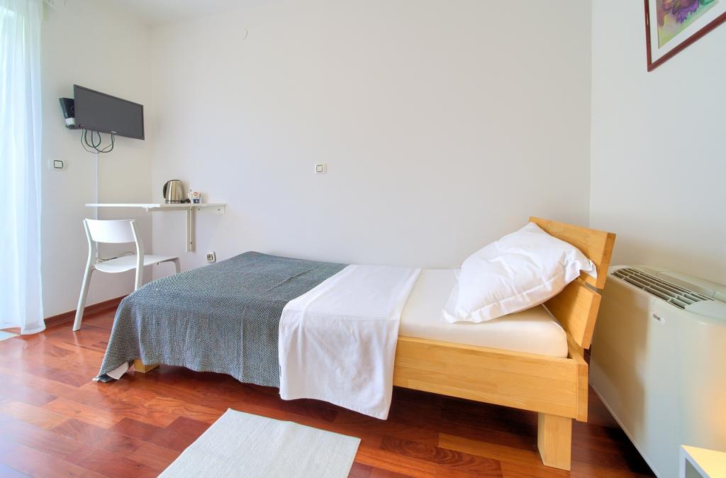 Całkowicie odnowiony i nowo urządzone pokoje i apartamenty w spokojnej Punta. Przyjemna atmosfera i domowa atmosfera. Blisko plaży (10 min spacerem) sklepy (5min pieszo) i miasta (15 min spacerem), wystarczający powód, aby nie korzystać z samochodu na wakacje dla rocznego codziennych potrzeb. duży ogród są dostępne dla towarzyskich i relaks. Duży parking. Śniadania pokoje 5 E / dzień Możliwość śniadania na mieszkania. klimatyzacja wliczona w cenę, niektóre apartamenty mają dostęp do dzieci i wózki indvalidska.