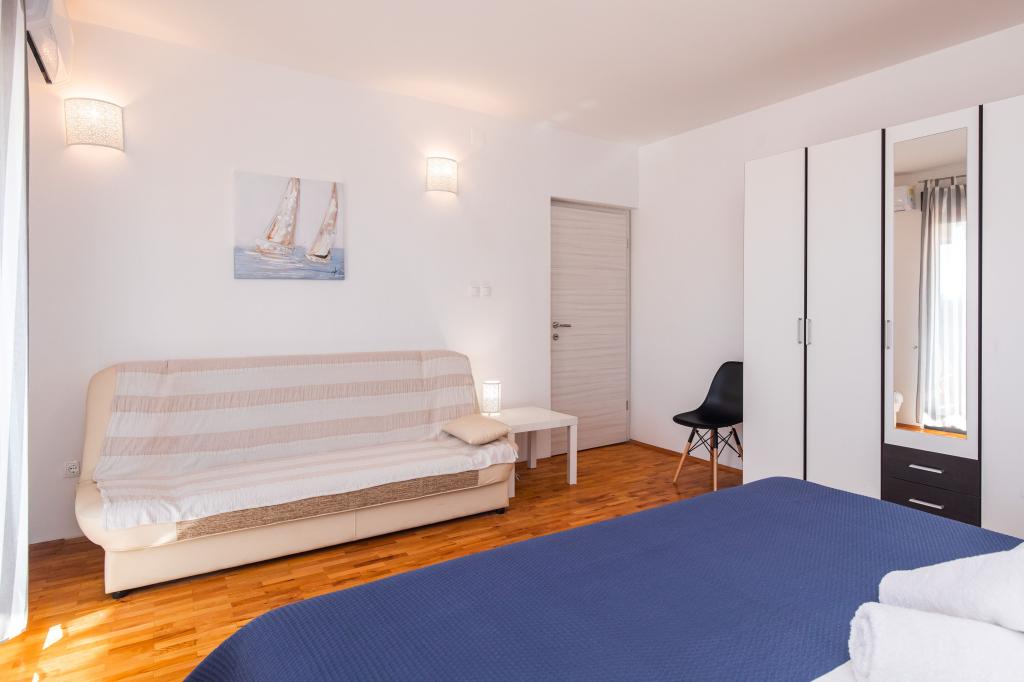 Studio otoczone jest zielenią i stanowi prawdziwą oazę spokoju: śródziemnomorskie kwiaty, winorośle, drzewa oliwne... Byłam zachwycona figami i śliwkami, które sama zebrałam i zjadłam, a w ogrodzie obok domu rosną również pomidory, ogórki i cukinia – wszystko można zbierać i spożywać. Ogród dla dziesięciu osób! Studio jest w sam raz dla dwóch osób i ma wszystko, czego potrzeba. Wszystko jest bardzo czyste i schludne, prawdopodobnie wszystko jest nowe. Łóżko jest bardzo wygodne i przyjemnie się w nim śpi. Samochód można zaparkować na podwórku. Właściciele są niezwykle mili, zaprosili mnie na kolację, którą przygotowali na grillu przy basenie. Basen jest dostępny dla gości studia i dużego apartamentu i ma jacuzzi, w którym można pływać o każdej porze dnia. Punat oferuje wiele letnich wydarzeń, więc ma bogate życie nocne. Uwielbiałam Beat on the Sea, a około dwudziestu minut stąd znajduje się klub Diamond dla tych, którzy szukają nieco bardziej intensywnej zabawy. Plaża znajduje się kilka minut spacerem od domu, ale właściciele pokazali mi inną, nieco dalej, która jest piękna, cichsza i piękniejsza, po prostu dla przyjemności. Ogólnie jestem zachwycona tym obiektem, zielenią, spokojem, życiem nocnym i wspaniałymi właścicielami! Polecam!