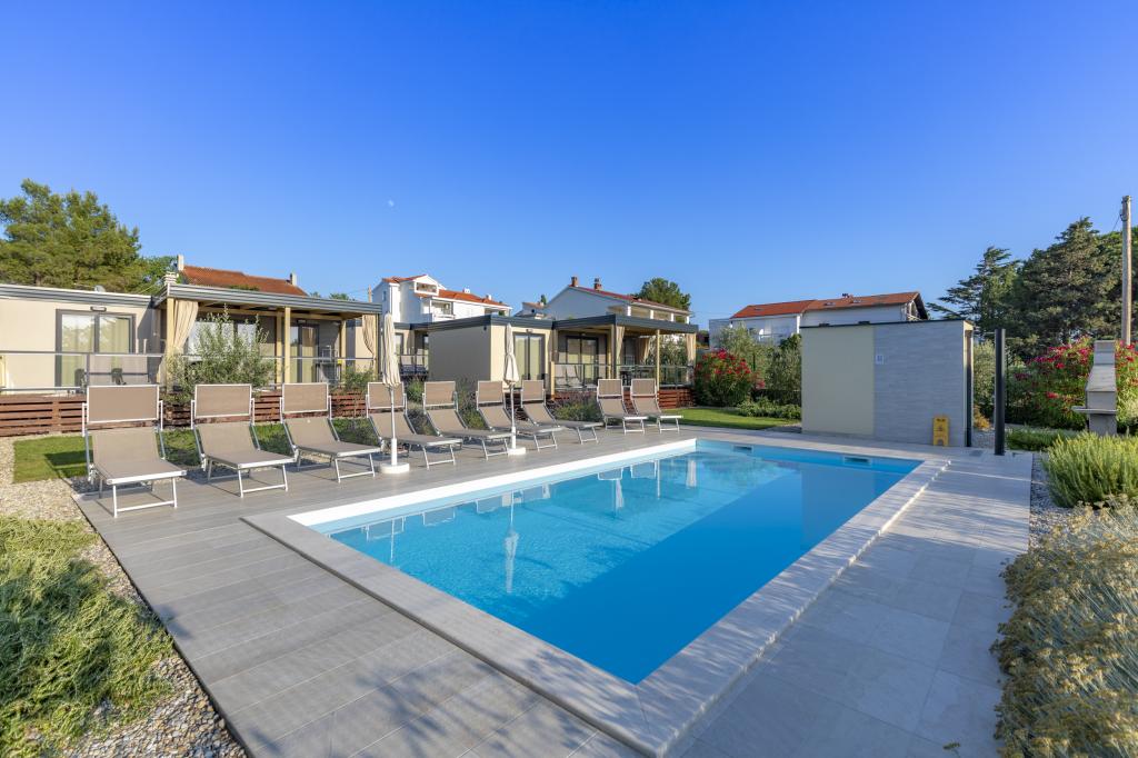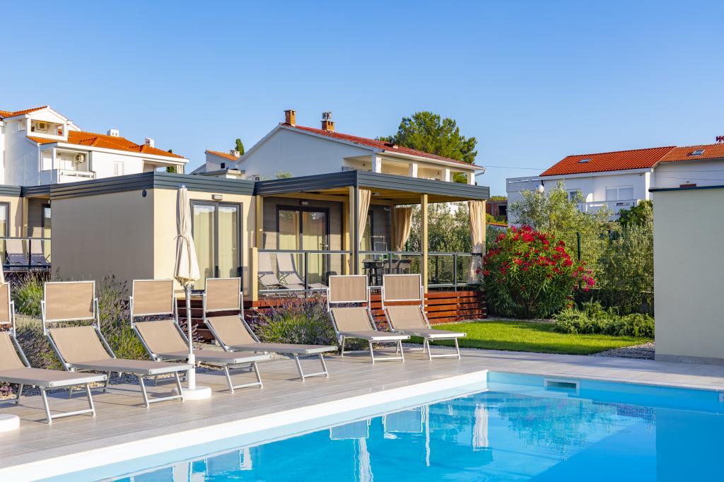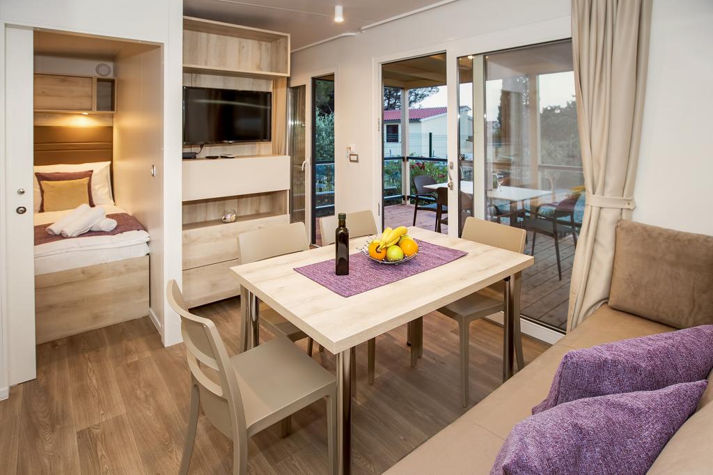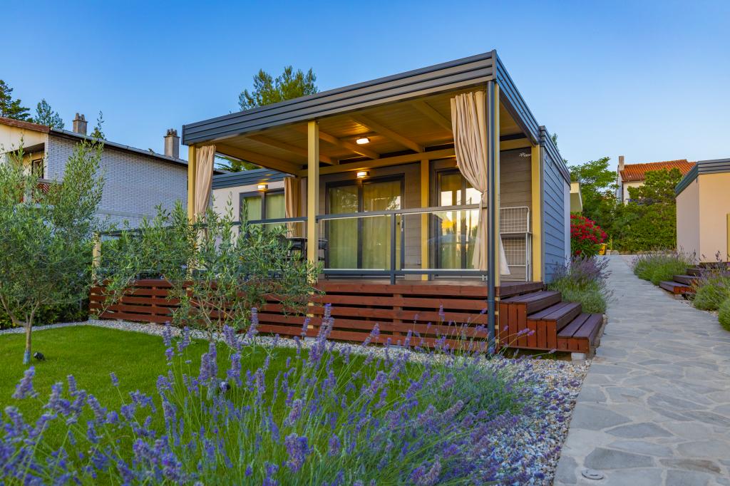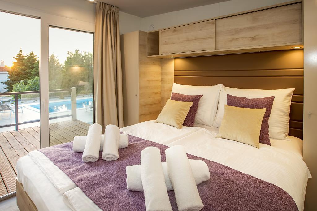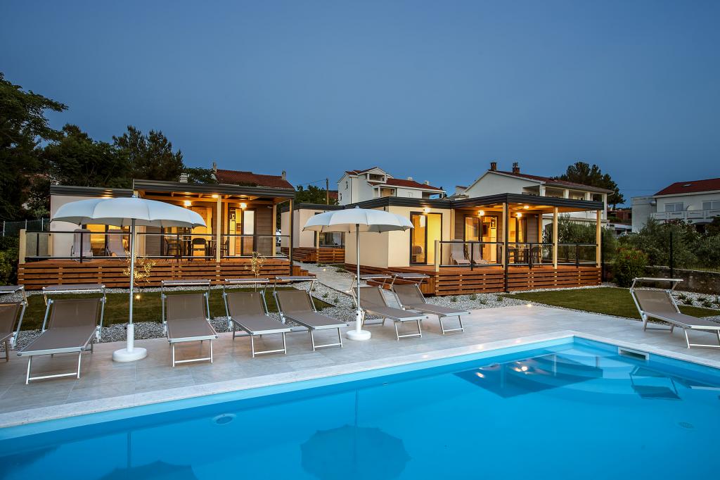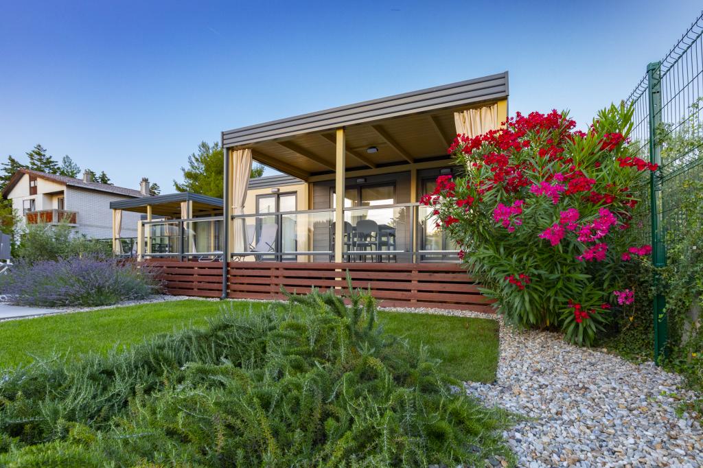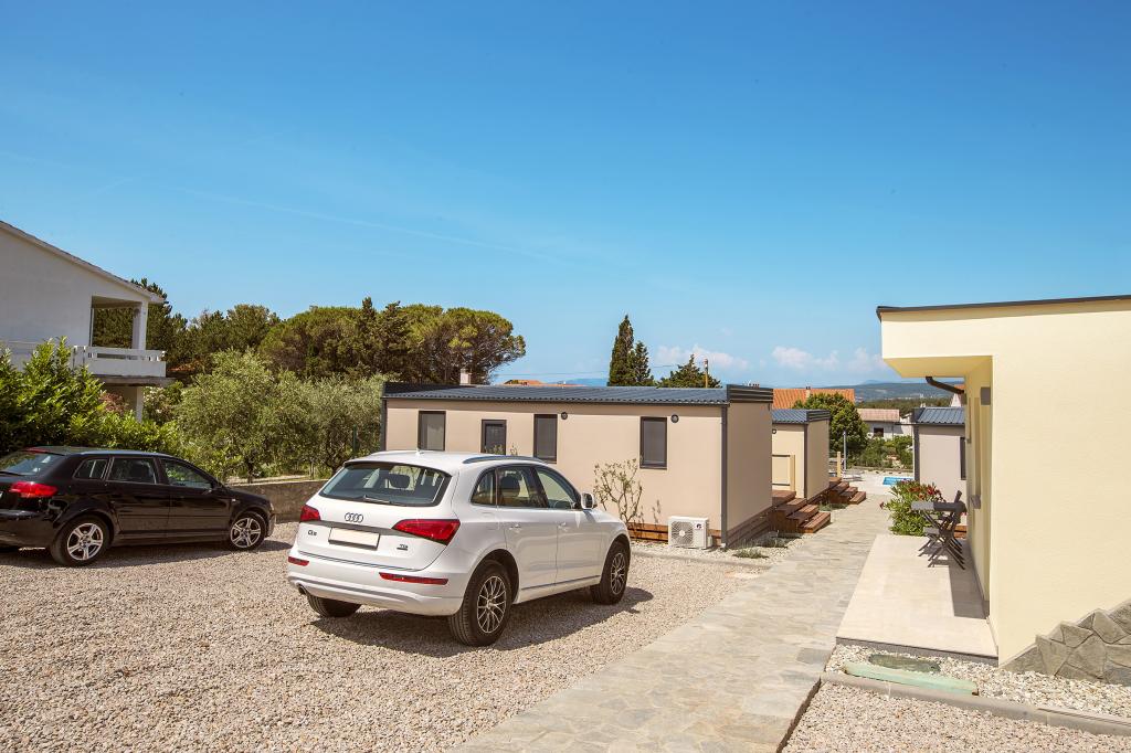 Domki mobilne „Sanmar” znajdują się w Punt na działce o powierzchni 900 m2 w otoczeniu śródziemnomorskiej zieleni, zaledwie kilka minut spacerem od kamienistej plaży. Zakwaterowanie oferowane jest w trzech nowoczesnych przyczepach mieszkalnych, z których każda może pomieścić 4 osoby plus dwoje dzieci na dodatkowym łóżku. Domy mają dwie sypialnie, pokój z podwójnym łóżkiem ma własną łazienkę, istnieje również możliwość dodatkowego łóżka dla dwojga dzieci na rozkładanej sofie w salonie. Kuchnia wyposażona jest w naczynia i sprzęt kuchenny. Każda przyczepa posiada w sumie dwie łazienki z prysznicem i częściowo zadaszony taras o powierzchni 20 m2. Domki wyposażone są w klimatyzację, telewizję satelitarną i bezprzewodowy internet. Goście mają do dyspozycji wspólny basen (8 x 4 m), leżaki przy basenie, miejsce parkingowe, stojak na rowery, wspólny grill oraz korzystanie z pralki (na życzenie). Kompleks Sanmar to idealne miejsce na spokojne rodzinne wakacje!