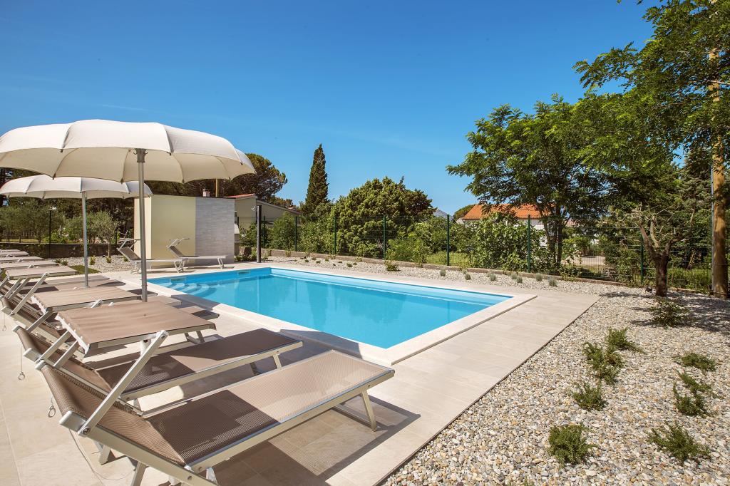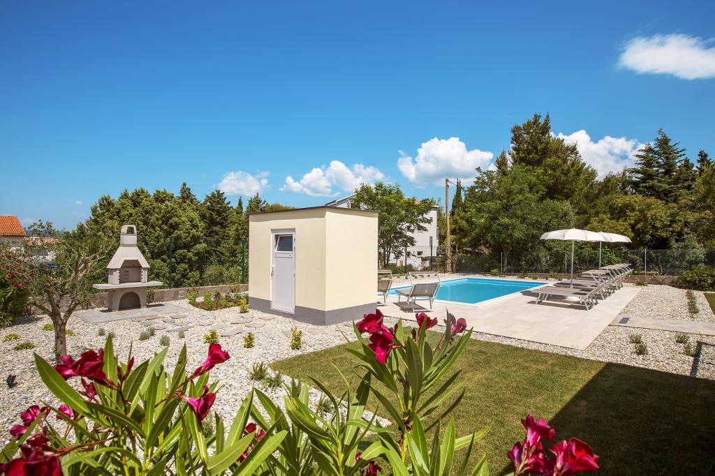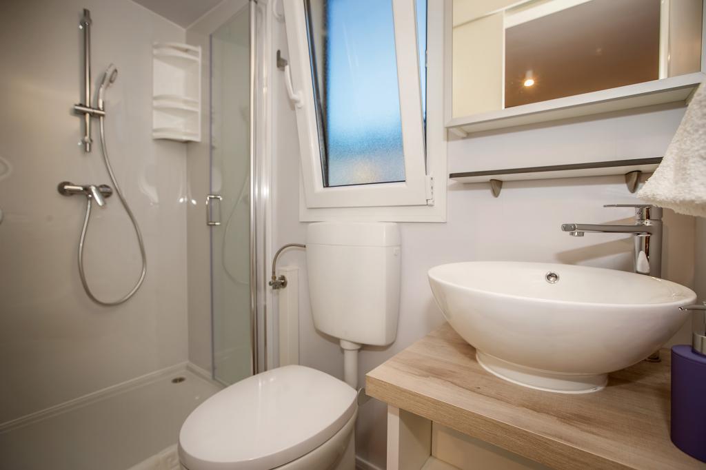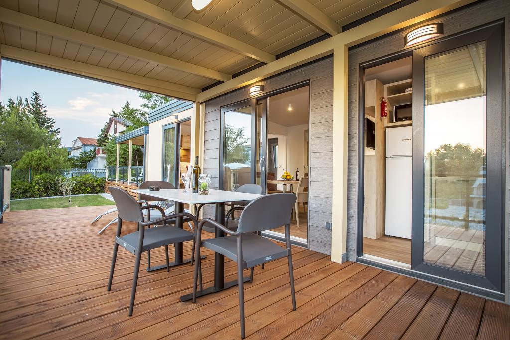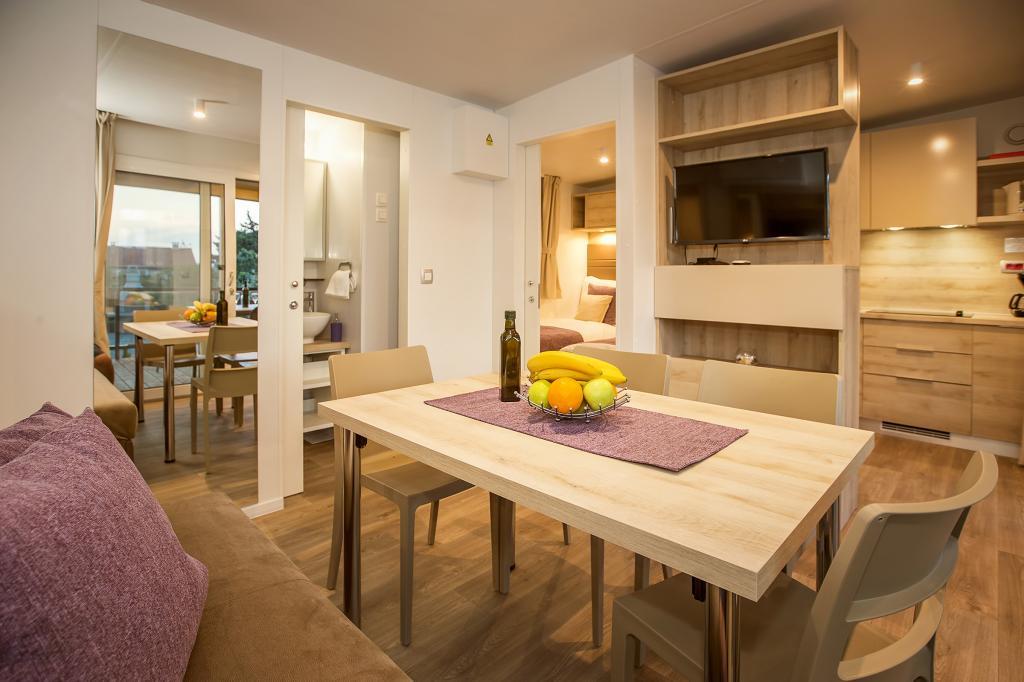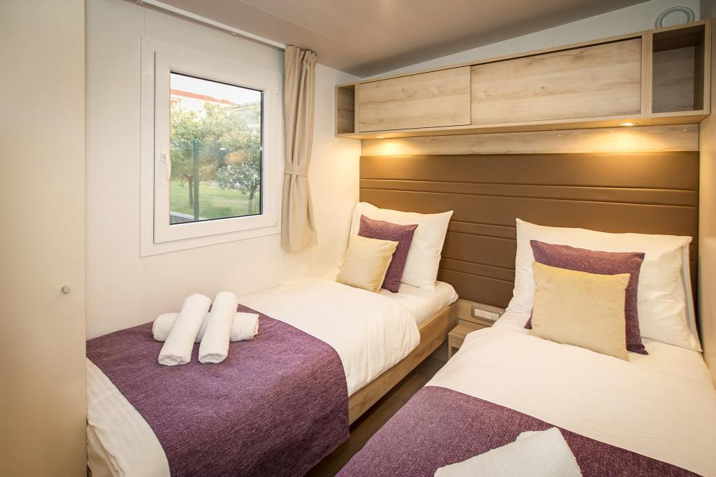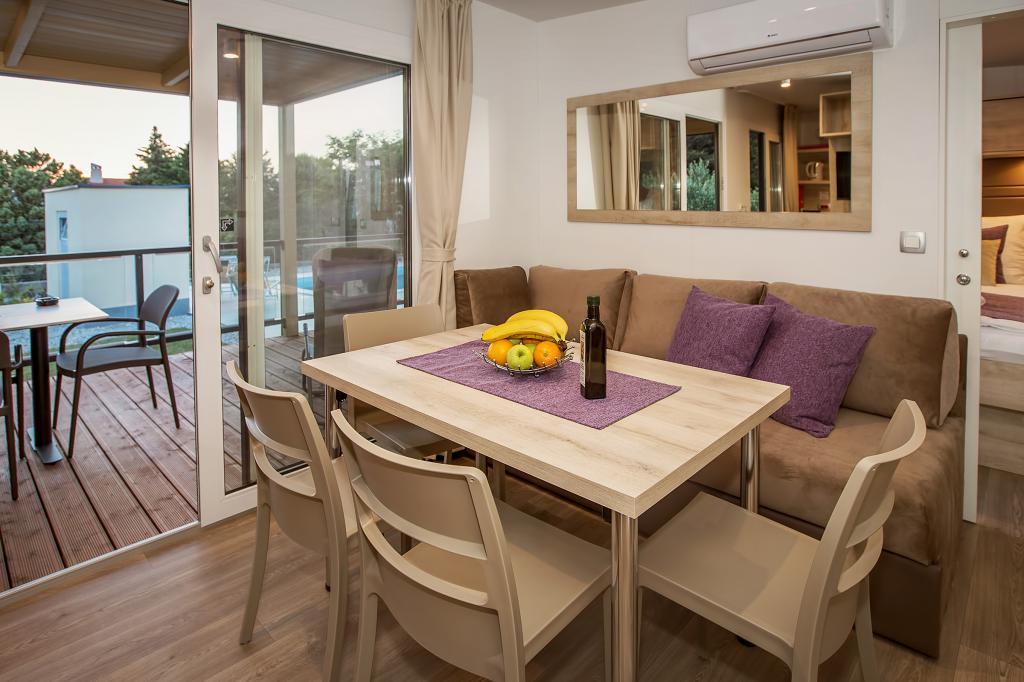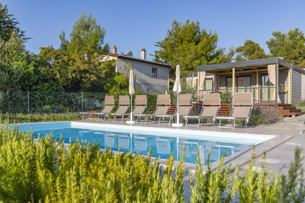 Domki mobilne „Sanmar” znajdują się w Punt na działce o powierzchni 900 m2 w otoczeniu śródziemnomorskiej zieleni, zaledwie kilka minut spacerem od kamienistej plaży. Zakwaterowanie oferowane jest w trzech nowoczesnych przyczepach mieszkalnych, z których każda może pomieścić 4 osoby plus dwoje dzieci na dodatkowym łóżku. Domy mają dwie sypialnie, pokój z podwójnym łóżkiem ma własną łazienkę, istnieje również możliwość dodatkowego łóżka dla dwojga dzieci na rozkładanej sofie w salonie. Kuchnia wyposażona jest w naczynia i sprzęt kuchenny. Każda przyczepa posiada w sumie dwie łazienki z prysznicem i częściowo zadaszony taras o powierzchni 20 m2. Domki wyposażone są w klimatyzację, telewizję satelitarną i bezprzewodowy internet. Goście mają do dyspozycji wspólny basen (8 x 4 m), leżaki przy basenie, miejsce parkingowe, stojak na rowery, wspólny grill oraz korzystanie z pralki (na życzenie). Kompleks Sanmar to idealne miejsce na spokojne rodzinne wakacje!