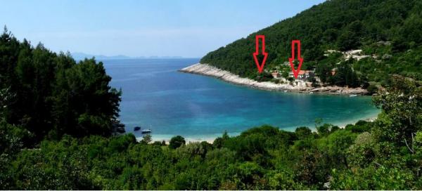 Jeśli szukasz mieszkania, gdzie można odpocząć od codziennego stresu, z dala od zgiełku, apartamenty te są doskonałym wyborem dla Ciebie. Apartamenty położone są w porcie Pupnatska, najpiękniejszej zatoce na wyspie Korcula, znajduje się 17 km od miasta Korcula. Apartament 1. (Wskazanym przez strzałkę bliżej plaży) składa się z dwóch sypialni (łóżko małżeńskie), wyposażona kuchnia, pokój dzienny, łazienka (WC i prysznic) oraz kominek. Na tarasie, pokryte winoroślą, z widokiem na plażę i zatokę. Mieszkanie ma grilla. Apartament posiada lodówkę i kuchenkę gazową. Apartament składa się z energii słonecznej. Odległość zaledwie 7 m od morza. Apartament 2 (strzałka po lewej na zdjęciu) składa się z dwóch sypialni (łóżko małżeńskie), wyposażona kuchnia z sofą oraz łazienki (WC i prysznic). Z przodu znajduje się duży taras z widokiem na plażę i Lastovo. Ma grilla. Doskonała lokalizacja: 7 m od morza, odizolowane od innych obiektów. Idealny dla osób poszukujących prywatności. Apartament składa się z energii słonecznej.