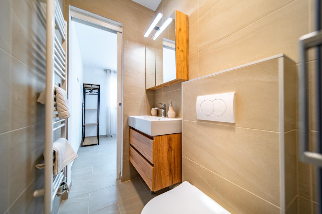 Mieszkanie jest czyste, schludne i regularnie konserwowane, kuchnia doskonale wyposażona, łazienka bardzo czysta, klimatyzacja chłodzi całe mieszkanie w około 30 min. Lokalizacja jest doskonała, jeśli chcesz zwiedzić wyspę Rab samochodem, ponieważ znajduje się ona w centralnej części wyspy, dzięki czemu w każde miejsce dotrzesz bardzo szybko (maksymalnie w ciągu 10 minut). Obsługa gospodarza jest również znakomita, pani. Ljuba i Sandra są naprawdę mili i mili, dyskretni, szanują Twój spokój i prywatność. Jeśli przyjedziesz ze zwierzakiem, plaża dla psów jest tylko 3 minuty drogi. odległość od apartamentu.