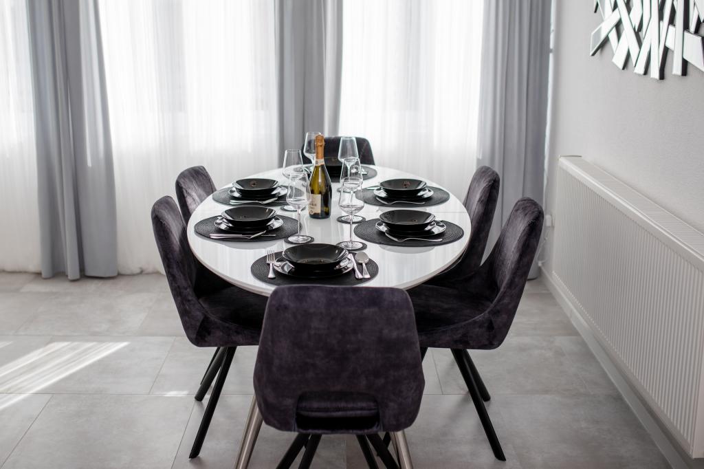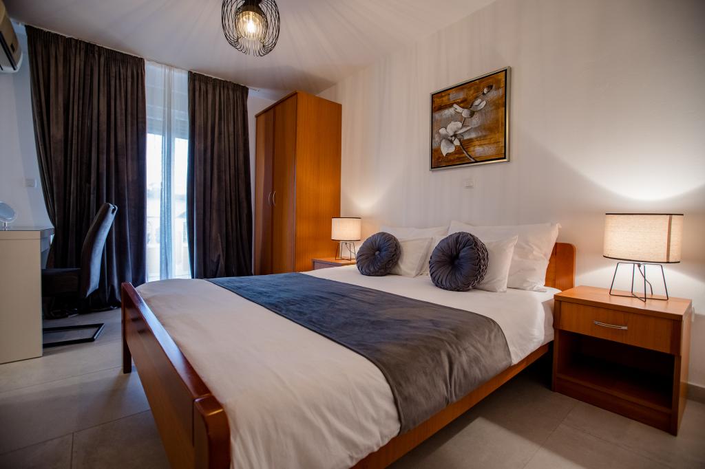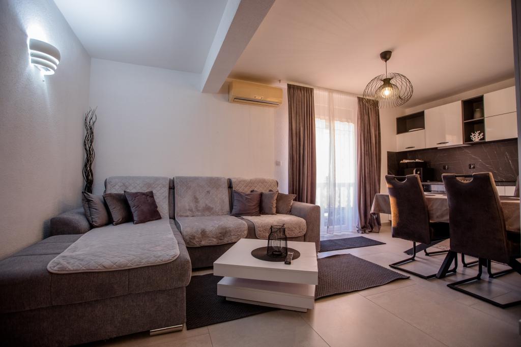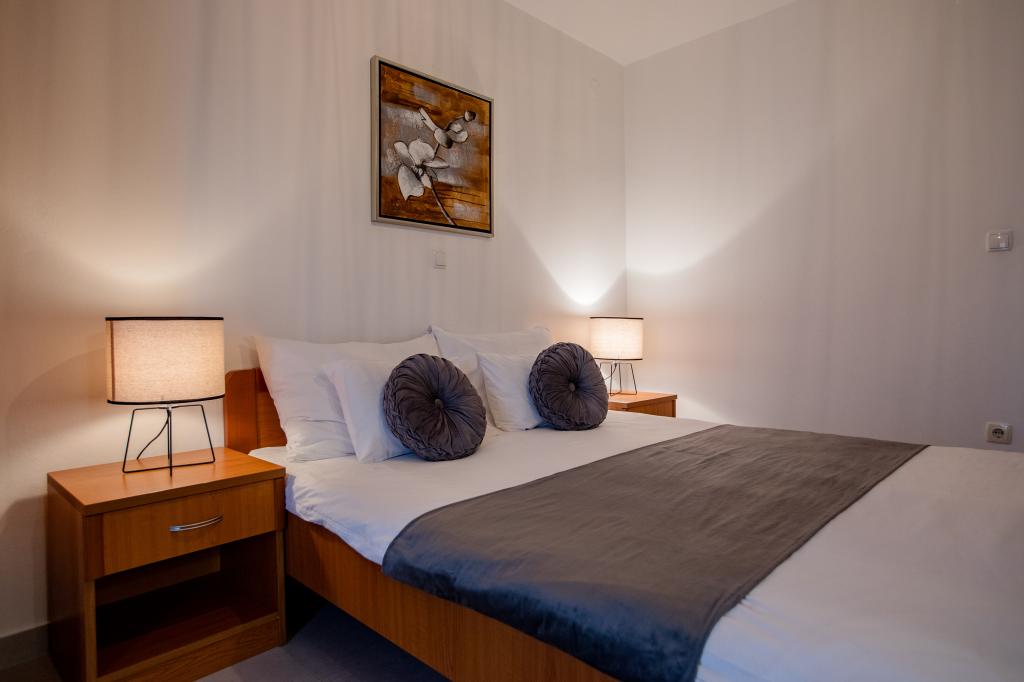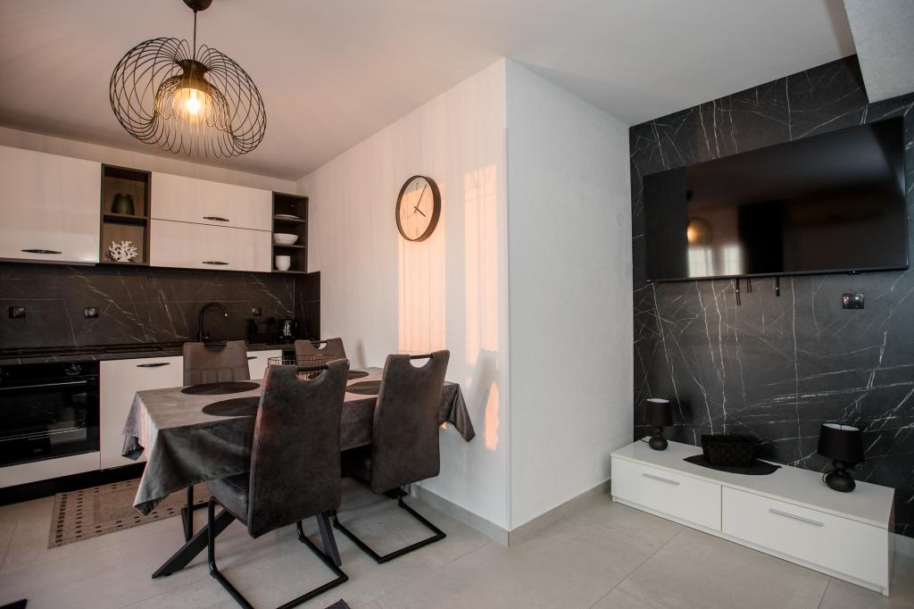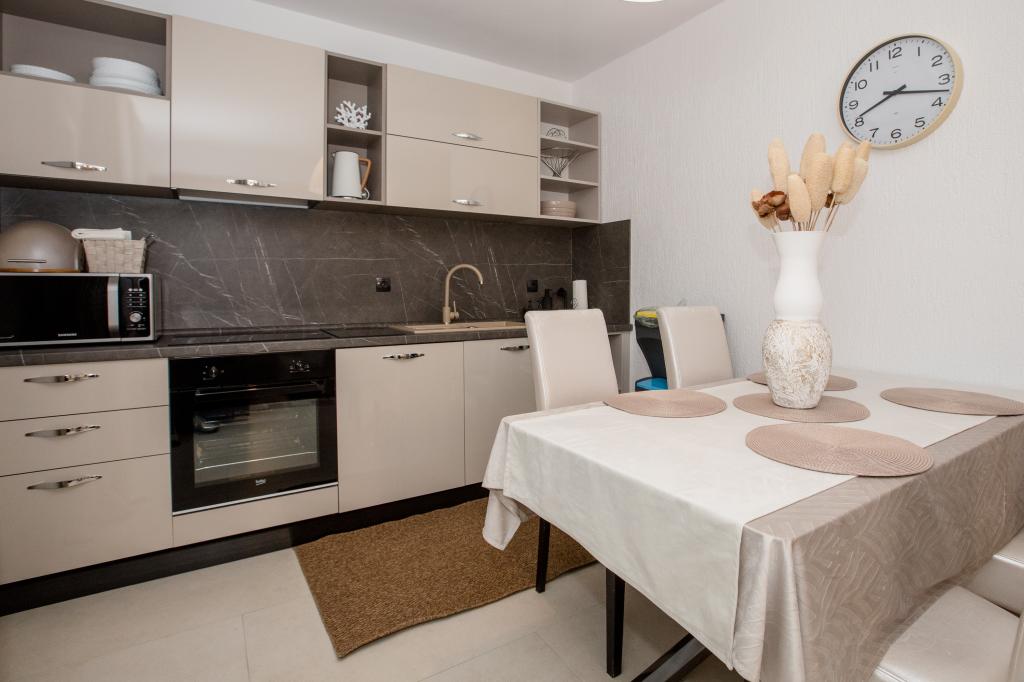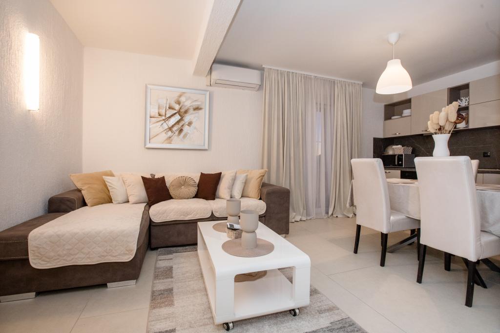 W pełni i nowocześnie wyposażone apartamenty położone są w spokojnej okolicy, blisko morza. Obiekt ma doskonałą lokalizację, zaledwie kilka minut spacerem od plaży i około 10 minut spacerem od centrum miasta i wszystkich udogodnień. Podwórko jest zadbane i zadbane, a goście mają do dyspozycji garaż na samochód.