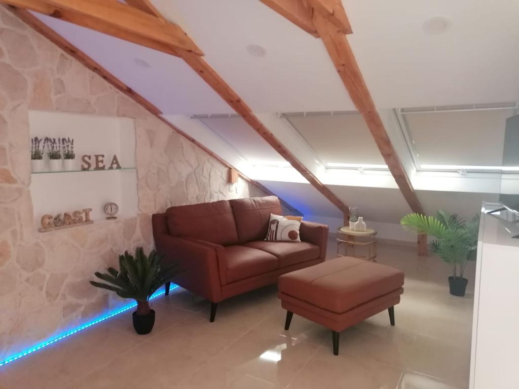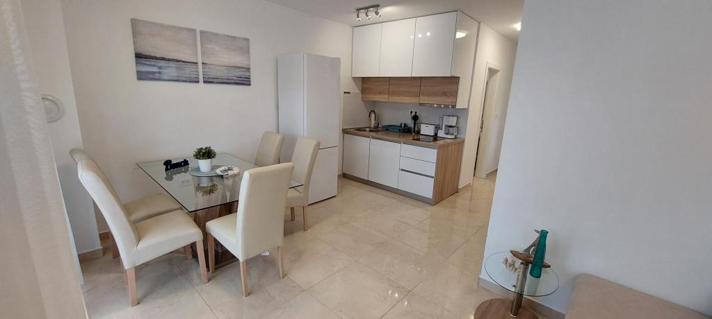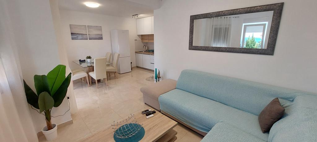 W apartamentach „Sea” i „Sun” masz taras przed apartamentem z widokiem na morze i taras boczny, na który możesz wejść z obu sypialni, również z widokiem na morze i góry. Apartament „Sky” ma również przestronny taras z pięknym widokiem na morze. Do dyspozycji masz również pralkę i suszarkę, a po wcześniejszym powiadomieniu możesz korzystać z grilla węglowego lub gazowego.