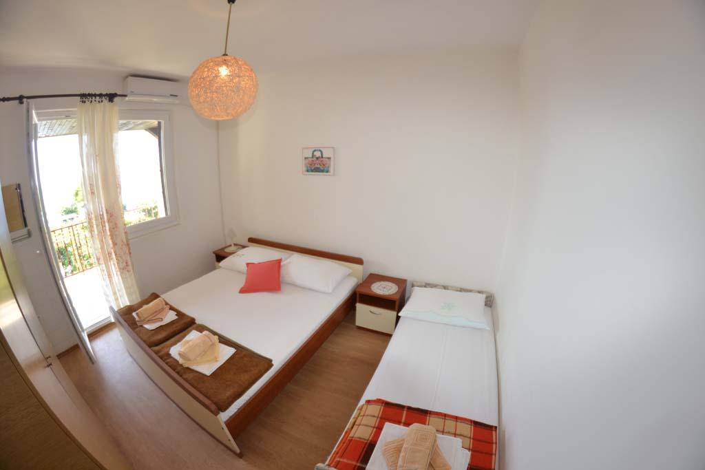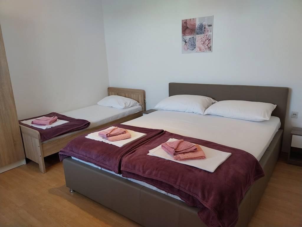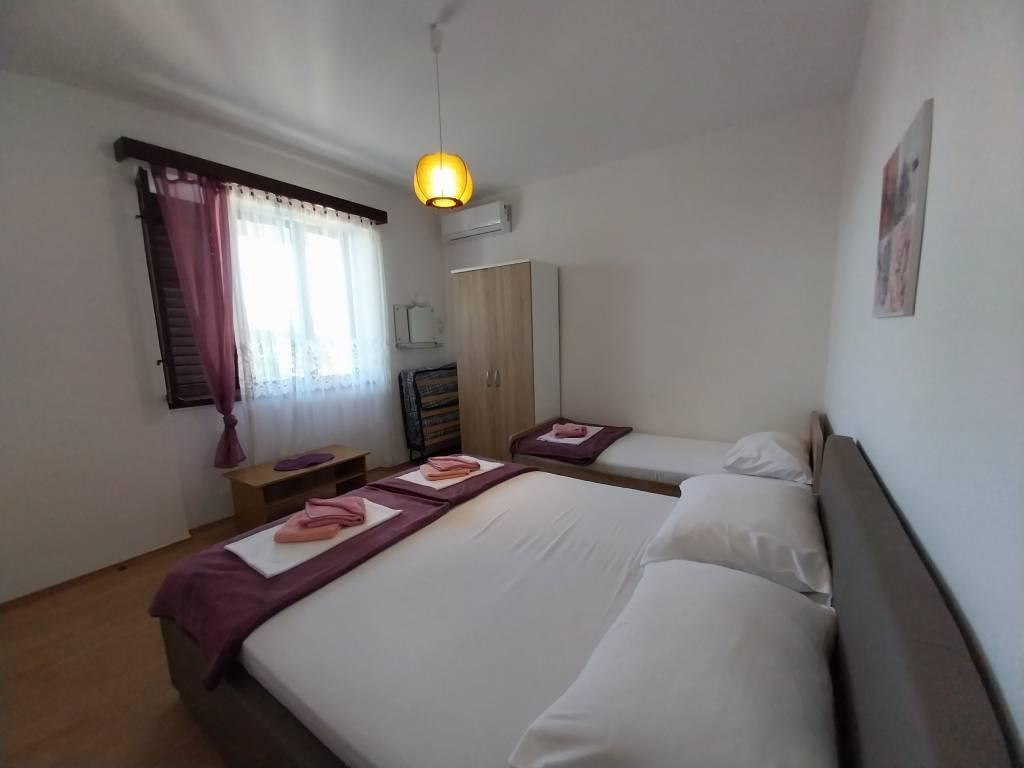 Znajdujemy się w pobliżu zatoki Padova III na wyspie Rab. Oferujemy naszym gościom zakwaterowanie w apartamentach zlokalizowanych w domu, około dziesięciu metrów od morza. Nad piaszczystą plażą znajduje się nasz prywatny taras z leżakami, a z balkonów wszystkich apartamentów roztacza się piękny widok na morze. Na dziedzińcu pod drzewami oliwnymi do dyspozycji gości jest duży grill i stół jadalny, a także huśtawki i zjeżdżalnia dla dzieci oraz stół do tenisa stołowego. Czekamy na Państwa przyjazd i życzymy miłego pobytu.