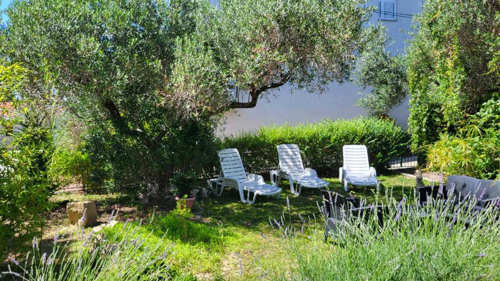 Apartamenty Padova 2 zlokalizowane są w spokojnej części wyspy, niedaleko plaży Padova II, w otoczeniu ogrodu i zieleni roślin ozdobnych. Są wyposażone we wszystko, co niezbędne do przyjemnego i beztroskiego wypoczynku; zmywarka, pralka, kuchenka mikrofalowa, czajnik, toster, programy satelitarne, WIFI... Apartamenty znajdują się na parterze, posiadają taras i ogród, w którym można odpocząć w cieniu drzew oliwnych. Na tarasie dostępny jest grill, do dyspozycji gości. Plaża oddalona jest od obiektu o 50 metrów, a piękną promenadą nad morzem można w 20 minut dojść do starego miasta Rab. Dla miłośników rejsów łodzią w bezpośrednim sąsiedztwie znajduje się taksówka. Parking znajduje się obok apartamentów i jest bezpłatny.