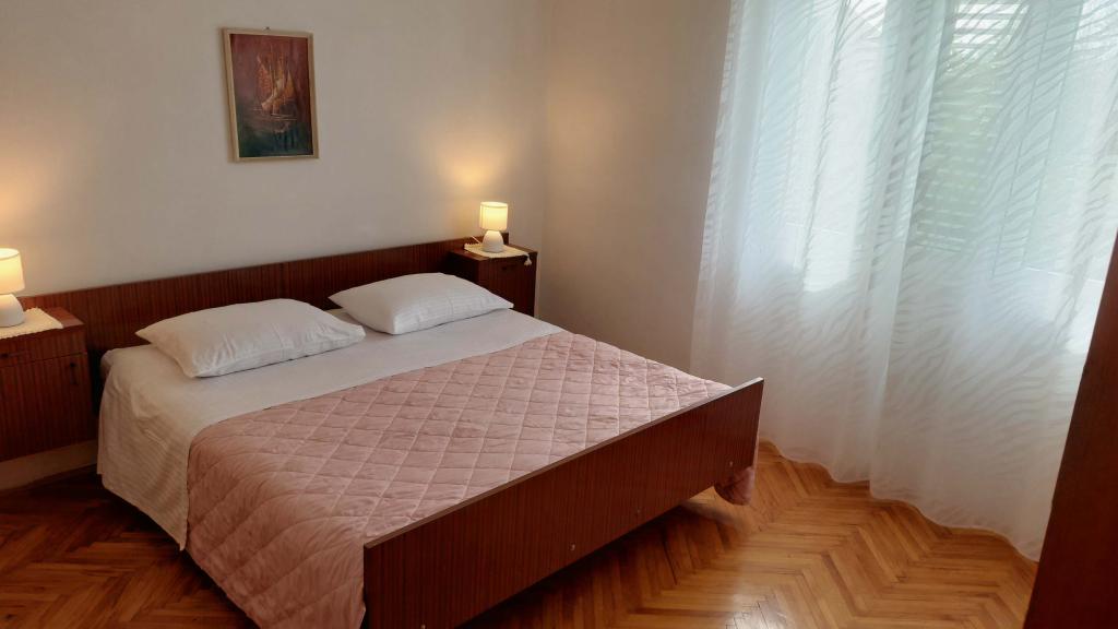 Apartamenty znajdują się w pięknym domu położonym na wzgórzu, zaledwie kilka minut spacerem od piaszczystej plaży w zatoce Padova 2. Niedaleko obiektu znajduje się pole kempingowe i hotel z dodatkowymi udogodnieniami, supermarketami, a także znanymi restauracjami i kawiarniami. Dom położony jest zaledwie kilometr od starego centrum miasta, do którego można dotrzeć promenadą wzdłuż morza i statkami, które przewożą turystów w bardzo przystępnych cenach. Apartamenty posiadają dwie sypialnie z podwójnymi łóżkami i dodatkowym łóżkiem, a apartament na pierwszym piętrze posiada również pokój jednoosobowy. Każdy apartament posiada łazienkę z prysznicem. Kuchnie są przestronne i w pełni wyposażone, z jadalnią. Apartament na pierwszym piętrze posiada taras o powierzchni 10 m², a apartament na parterze posiada zadaszony dziedziniec. Przed domem znajduje się prywatny parking. Doskonała lokalizacja daje możliwość pozostawienia samochodu na czas wakacji i nieużywania go, jeśli nie chcesz. Goście mogą bezpłatnie korzystać z Wi-Fi.