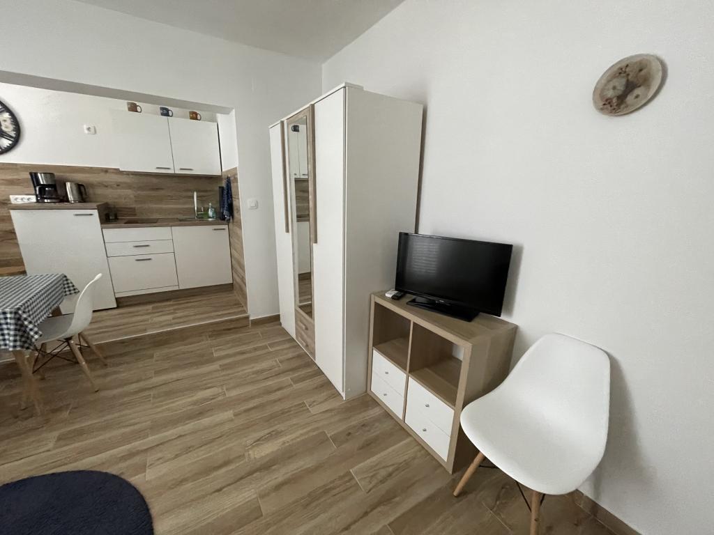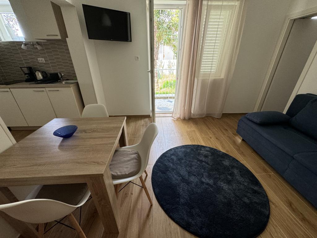 Nasz dom znajduje się w Banjol na brzegu, w przyjemnym otoczeniu drzew oliwnych, roślin aromatycznych, palmy i agawy, zaledwie kilkuset metrów od pierwszego piaszczystej plaży. Do starego centrum miasta, poczta, apteka znajduje się około 2 km nadmorska promenada 45min. chodzenia. Apartamenty wyposażone są we wszystkie niezbędne urządzenia, telewizja satelitarna, WI-FI, powietrza warunkowego, pościel i ręczniki.