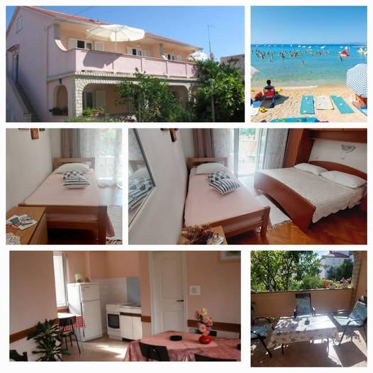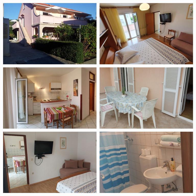 Wynajmujemy w pełni wyposażone i klimatyzowane apartamenty (dla 2-5 osób) + TV SAT/LCD, każdy z własnym tarasem lub balkonem + miejsce parkingowe na podwórzu i szybki internet. Oferujemy również klimatyzowane pokoje 2-3 osobowe, każdy z własnym tarasem, toaletą/toaletą oraz możliwością korzystania z w pełni wyposażonej kuchni, jadalni (TV/SAT) i przyjemnego tarasu zewnętrznego z meblami ogrodowymi. Znajdujemy się w pobliżu pięknej piaszczysto-żwirowej plaży (200-250m) i wszystkich innych obiektów niezbędnych do beztroskiego i przyjemnego wypoczynku letniego (sklepy, restauracje, pizzerie, bary i kawiarnie na plaży, obiekty rekreacyjne, programy dla dzieci...) . Do starego miasta wyspy Rab z bogatą historią można dojść w zaledwie 20 minut piękną promenadą nad morzem.