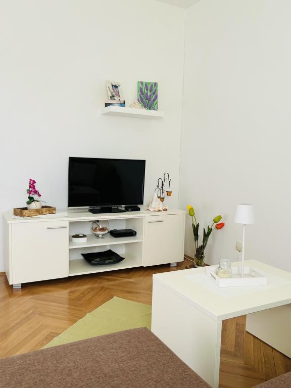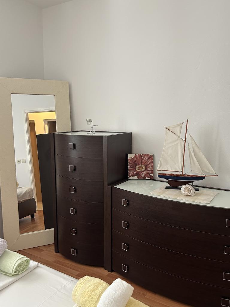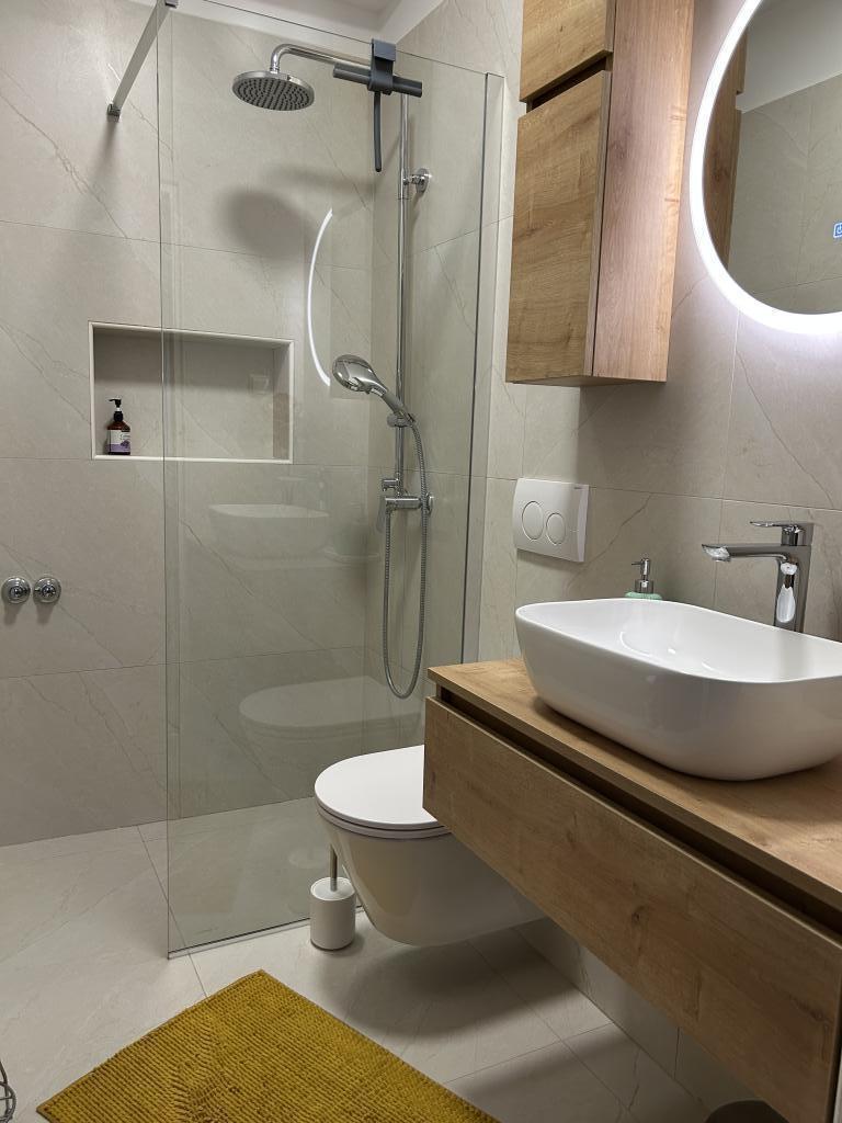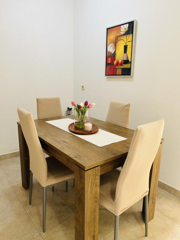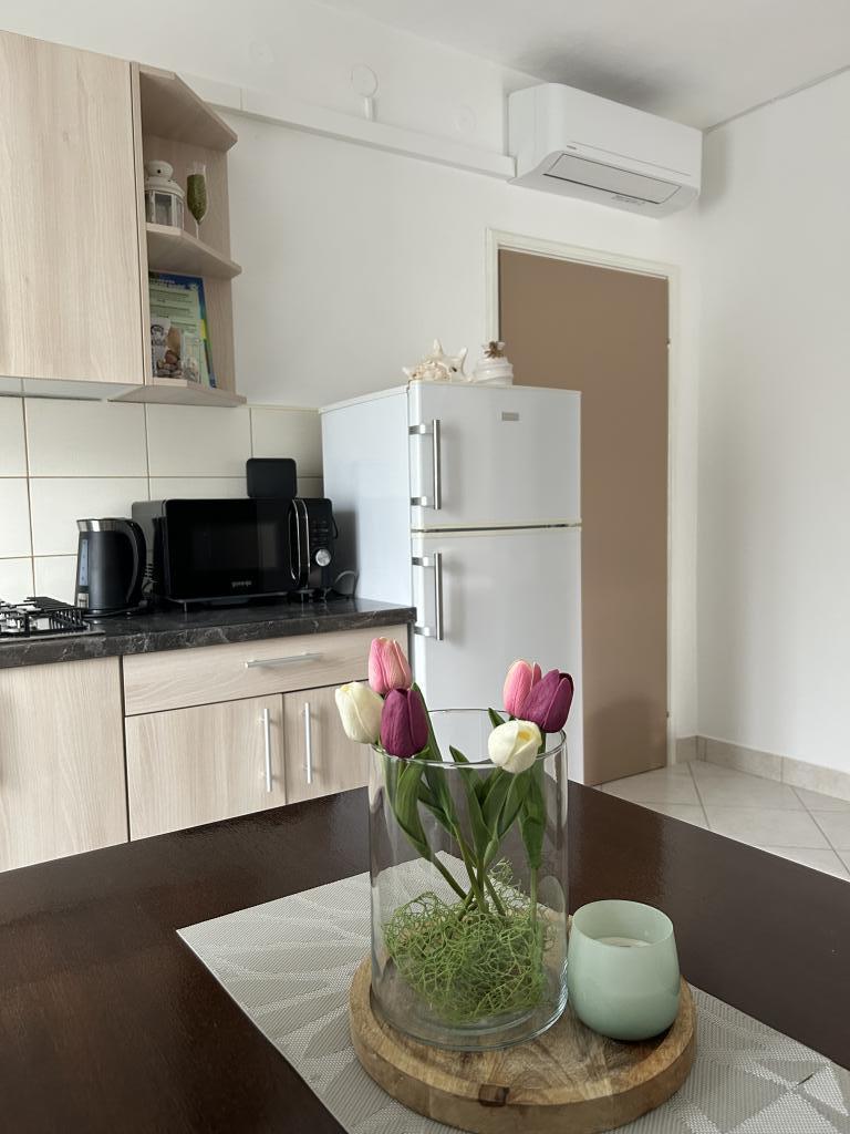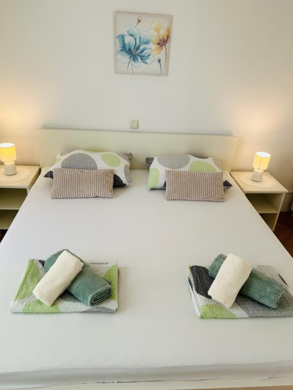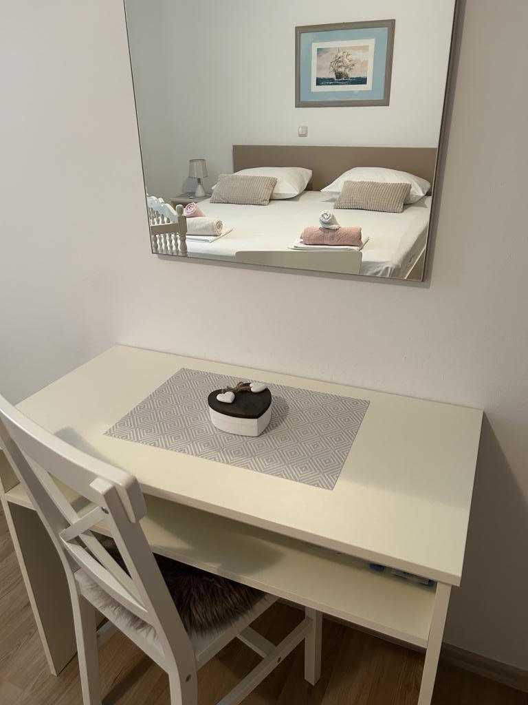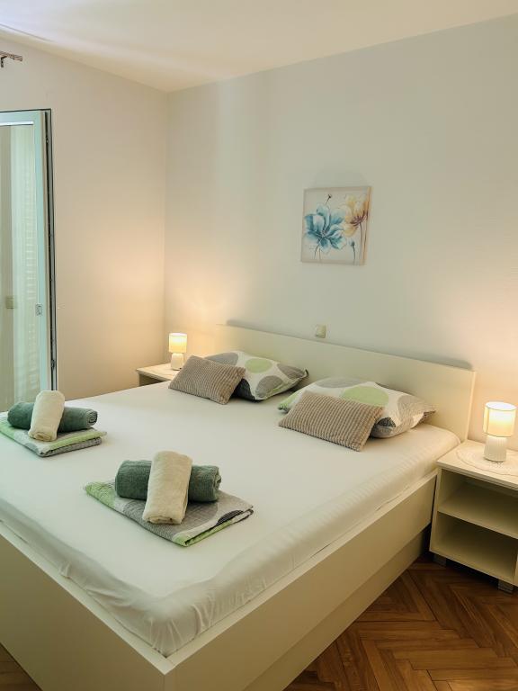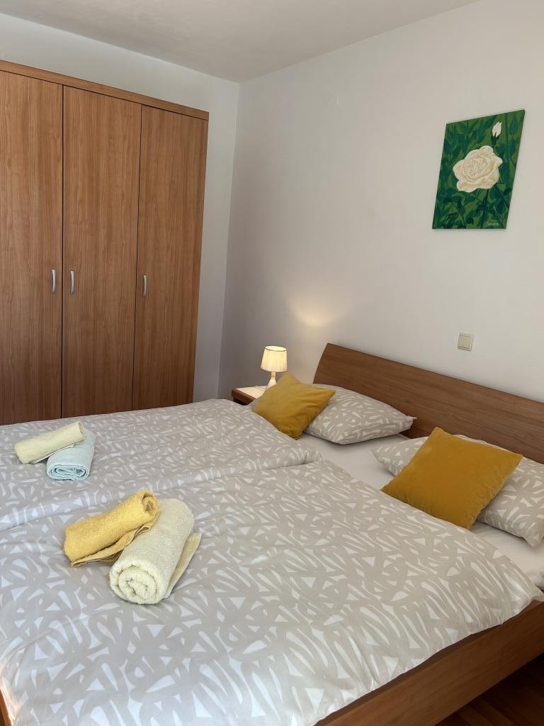 Nowocześnie wyposażone apartamenty w cichym otoczeniu. Apartamenty znajdują się na parterze oraz na pierwszym piętrze. Składają się z salonu, pokoi z łóżkiem małżeńskim, kuchni ze wszystkimi niezbędnymi akcesoriami, łazienki i balkonu oraz darmowego Wi-Fi. Na terenie obiektu bezpłatny parking, oraz możliwość skorzystania z grilla. Sklep spożywczy, kawiarnia i salon fryzjerski znajdują się w odległości 300 metrów od budynku, a inne obiekty, takie jak restauracja, ambulatorium, apteka itp. oddalone są o 5 minut jazdy samochodem. Najbliższa żwirowa plaża znajduje się 700 metrów od hotelu, a jeśli nadal zdecydujesz się na dalsze zwiedzanie, półwysep Frkanj, który jest pełen zatoczek i plaż, znajduje się 5 minut jazdy od hotelu. Stare miasto Rab oddalone jest o 20 minut spacerem wzdłuż morza lub 5 minut jazdy samochodem.