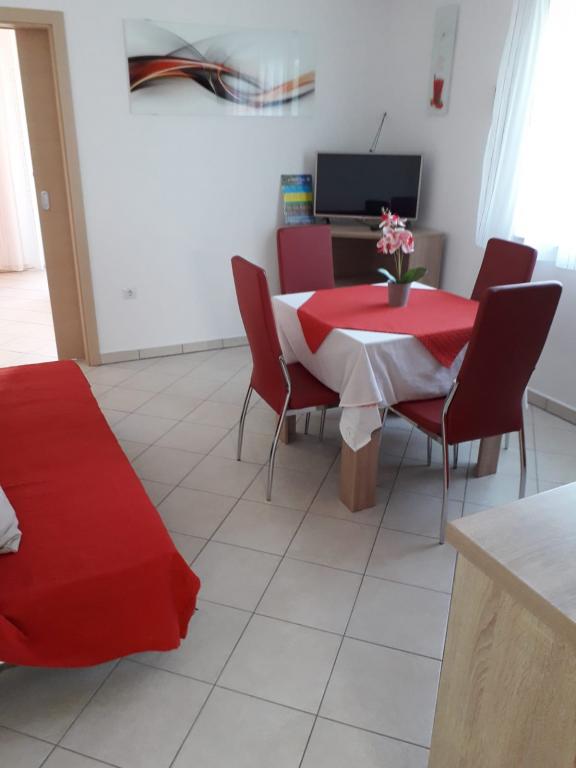 Pierwszy raz byliśmy na Rabie, ale na pewno nie ostatni, Rab jest piękny, ale byliśmy zachwyceni podejściem i gościnnością gospodarzy, mieszkanie jest idealnie czyste i zadbane ze wszystkim, czego potrzebujesz, tarasem i pięknym gajem oliwnym, sadem a kwiaty to święto dla duszy , a cień cały dzień nie ma potrzeby klimatyzacji , szczególnie nas zachwyciła , wieczorem idealne na spacer do centrum 10 min , jeszcze raz dziękuję Sandro , szczególnie na ciasto idealnie