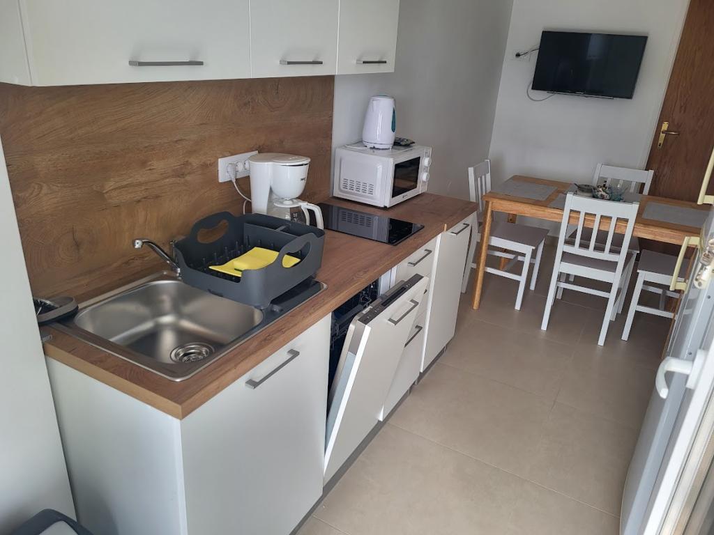 Bardzo ciche i komfortowe zakwaterowanie. Właścicielka jest bardzo miłą i pomocną osobą. Mieszkanie jest czyste, ładnie umeblowane i w pełni wyposażone. Do plaży jest kawałek drogi, więc możesz udać się tam w kostiumie kąpielowym. Sklep znajduje się około 5-10 minut spacerem, tuż pod apartamentem znajdują się dwie restauracje, jedna z przystępnymi cenami, druga bardziej luksusowa. Parkowanie jest nieco bardziej skomplikowane, ale nie jest tragicznie. Chętnie tu wrócimy.