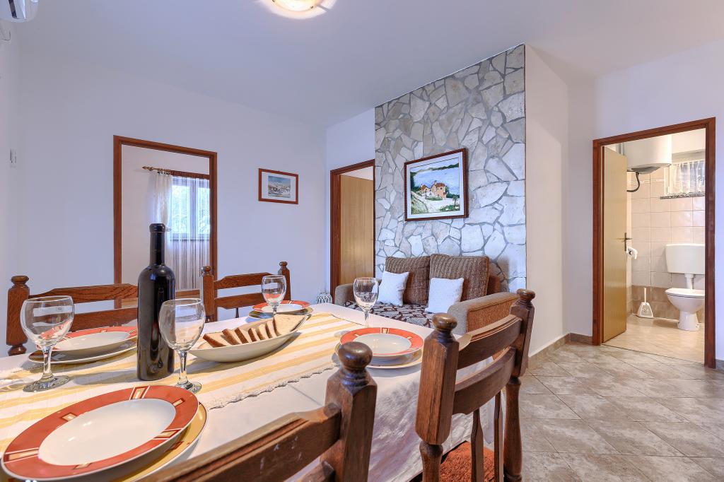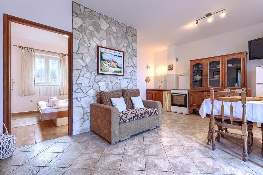 Dom z kilkoma apartamentami w osiedlu Drenje. Znajduje się 5 minut jazdy samochodem od plaży i 15 minut od miasta Labin. Apartamenty znajdują się na parterze. Zapewniają one pełną prywatność oraz możliwość relaksu i odpoczynku. Jeden apartament ma powierzchnię 42 metrów kwadratowych i składa się z sypialni z łóżkiem małżeńskim i możliwością dostawki. W skład apartamentu wchodzi salon z jadalnią, kuchnia ze wszystkimi niezbędnymi sprzętami AGD, taras z widokiem na morze i łazienka. Drugi apartament ma powierzchnię 56 metrów kwadratowych i składa się z dwóch sypialni, każda z łóżkiem małżeńskim. Salon z jadalnią, kuchnia ze wszystkimi niezbędnymi sprzętami AGD, taras z widokiem na morze i łazienka. Najbliższa restauracja znajduje się 5 minut jazdy samochodem, podobnie jak najbliższy targ. Apartamenty położone są w spokojnej okolicy, w przyjemnym otoczeniu przyrody – wszystko, czego potrzebujesz na idealne wakacje!