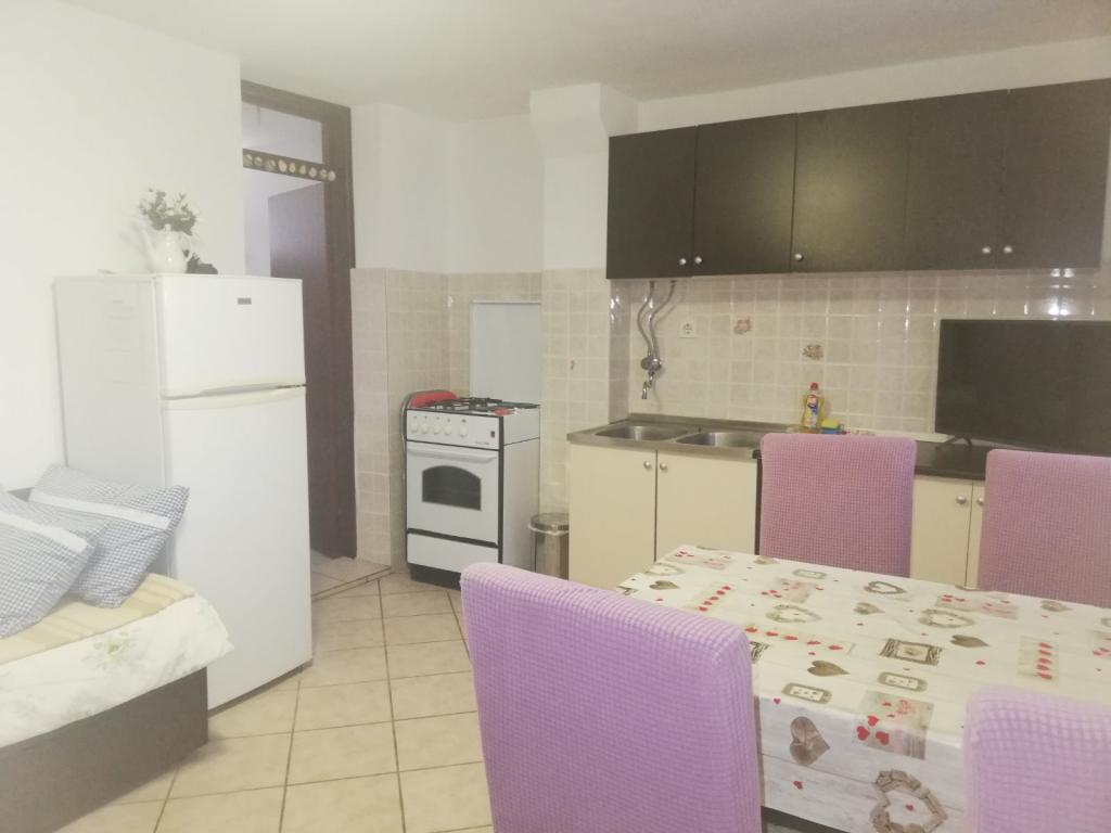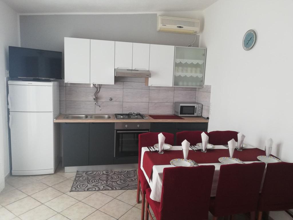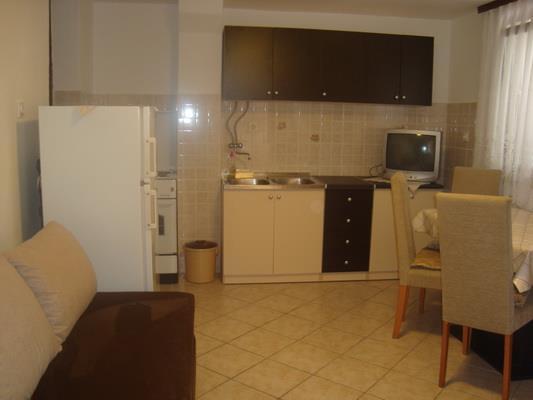 Apartamenty znajdują się w cichym miejscu, w pełni umeblowane. W kuchni znajdują się wszystkie niezbędne sprzęty do przechowywania i serwowania potraw i napojów. Mają też lodówkę z zamrażarką, kuchenkę gazową/elektryczną z piekarnikiem. Apartamenty są klimatyzowane. WiFi W łazience jest kabina prysznicowa, toaleta, umywalka z lustrem. Obok apartamentów znajdują się zadaszone tarasy z szerokimi widokami na morze. Murowany grill. Obok apartamentów znajduje się parking na własnym podwórku. Plaża ma 70 metrów. Plaża jest idealna dla dzieci. Dodatkowe udogodnienia na plaży obejmują kręgielnię i siatkówkę wodną.