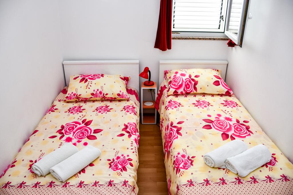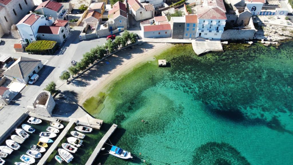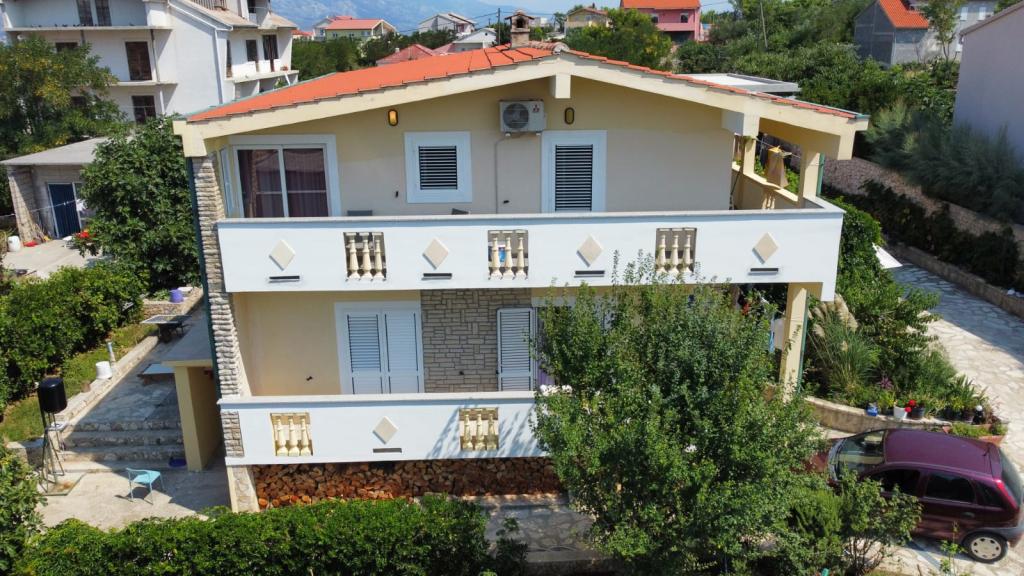 Apartamenty znajdują się w spokojnej okolicy w Ražanac, bez hałasu i głośnego ruchu i są idealnym miejscem na relaks i zabawę w okresie świątecznym. Znajdują się one na górnym piętrze domu rodzinnego. Każdy apartament składa się z dwóch oddzielnych pokoi, kuchni i łazienki. Apartamenty są wyposażone we wszystkie niezbędne udogodnienia, w tym klimatyzację, internet i odbiornik satelitarny. Każdy apartament posiada balkon z widokiem na morze i góry Velebit. Do nieruchomości przynależy duże podwórko z możliwością zaparkowania przyczepy. Obiekt znajduje się 5 minut spacerem od plaży i centrum ze sklepami, restauracjami, pocztą, ambulansem, apteką, marketami, bibliotekami i wszelkimi innymi niezbędnymi udogodnieniami.
