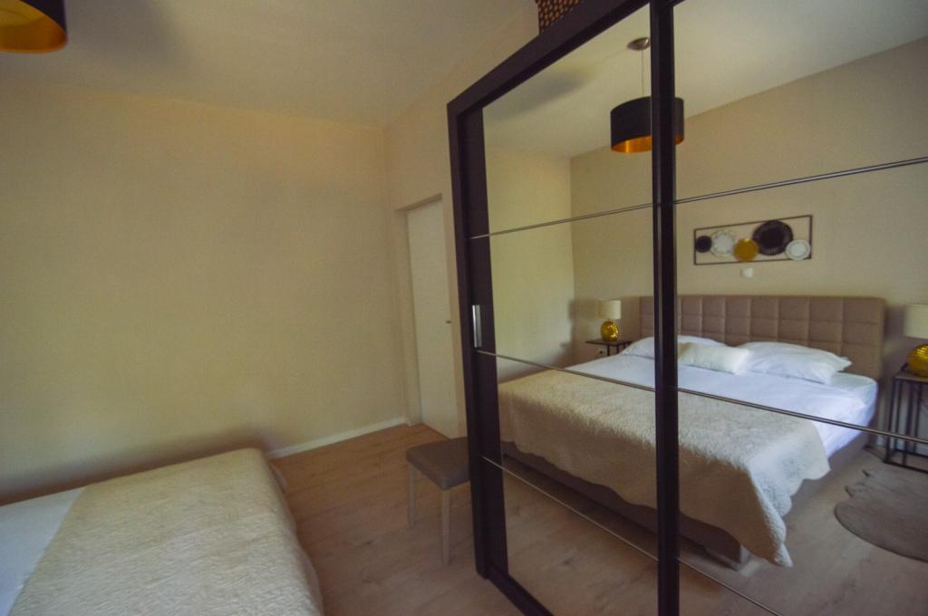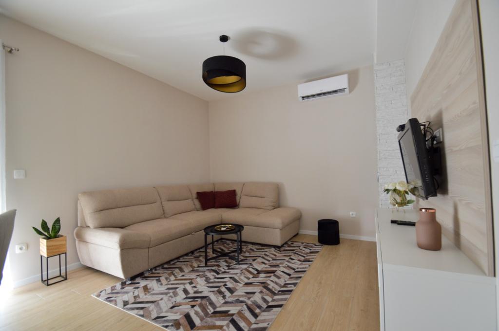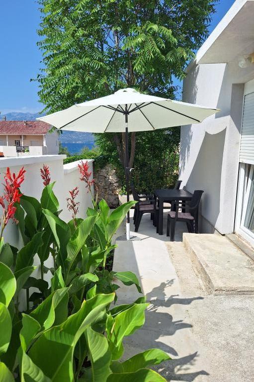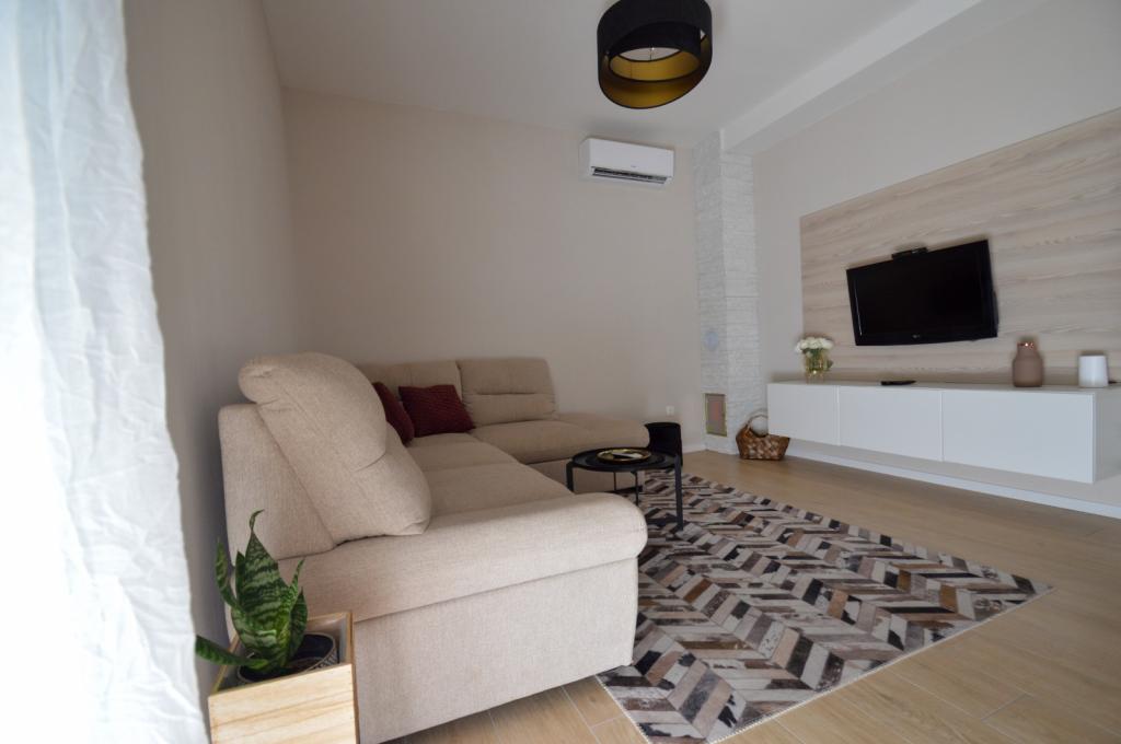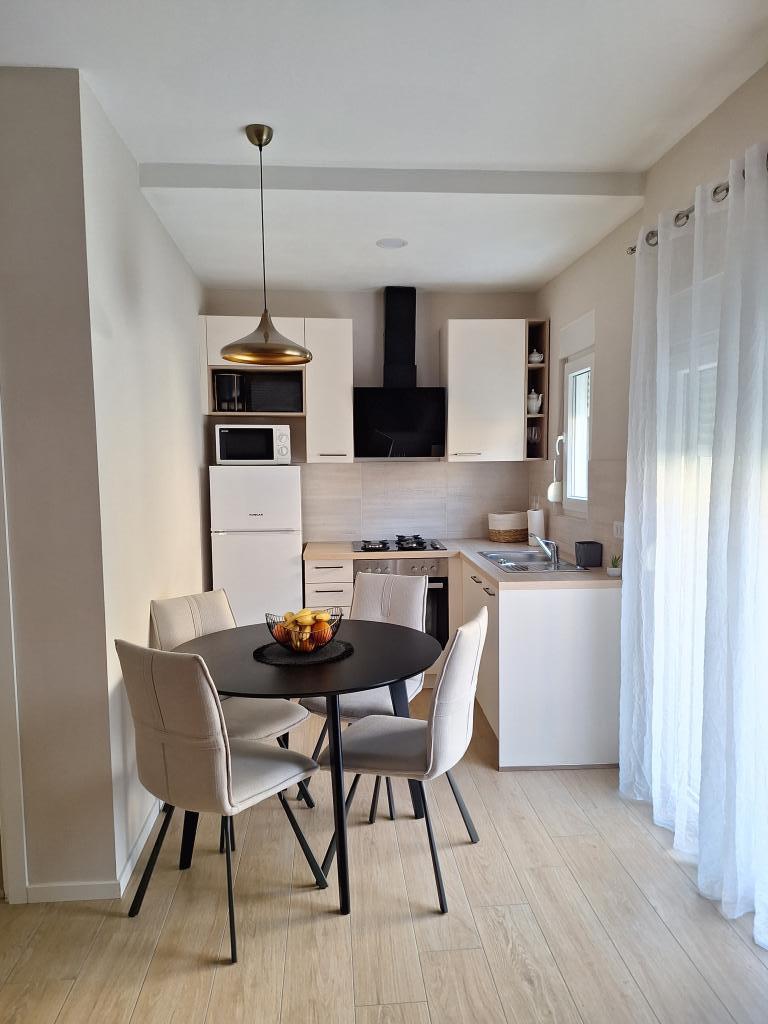 NOWY! W pięknym miejscu, które zachęca do rodzinnego wypoczynku i ładowania akumulatorów, znajduje się nowo wyremontowany, dwupokojowy dom na parterze o powierzchni 70 m2 (4+1). W pełni wyposażone. Jako samodzielny obiekt zapewnia pełen spokój i prywatność blisko morza. To tylko minuta spacerem od kamienistej plaży. Blisko centrum i całej niezbędnej infrastruktury! Powitanie :)!