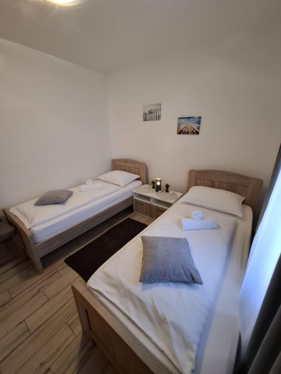 Witamy w naszym domu wakacyjnym w Ražancu! Nasz dom wakacyjny położony jest w sercu małej wioski rybackiej Ražanac i oferuje idealne połączenie spokoju, natury i autentycznej dalmatyńskiej atmosfery. Z przestronnego tarasu można podziwiać spektakularny widok na potężny Velebit, a świeże morskie powietrze i lekka bryza tworzą idealną atmosferę do relaksu... Bezpłatne Wi-Fi, klimatyzacja, w pełni wyposażona kuchnia, taras z widokiem na góry, grill, prywatny parking... Znajduje się zaledwie kilka minut spacerem od plaży. W pobliżu znajdują się restauracje z lokalnymi specjałami, sklepy i kawiarnie... Idealny punkt wypadowy do zwiedzania Zadaru, Parku Narodowego Paklenica i wysp archipelagu zadarskiego... Niezależnie od tego, czy szukasz relaksu nad morzem, aktywnego wypoczynku na łonie natury czy autentycznego śródziemnomorskiego doświadczenia, nasz dom w Ražancu jest właściwym wyborem dla Ciebie! Zarezerwuj pobyt i odkryj piękno Dalmacji!