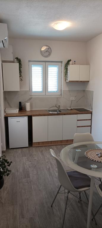Jest to mieszkanie w rodzinnym domu na parterze. Powierzchnia mieszkania wynosi 30 m2 i posiada balkon z częścią wypoczynkową. Mieszkanie składa się z aneksu kuchennego połączonego z salonem, łazienki oraz sypialni z łóżkiem małżeńskim i sofą rozkładaną dla jednej osoby (w razie potrzeby). Jest odpowiedni dla maksymalnie dwóch lub trzech osób. Dostępny jest bezpłatny parking. Odległość od plaży wynosi 200 metrów. W Ražnje znajduje się kilka restauracji, sklep spożywczy, kawiarnia i piekarnia.