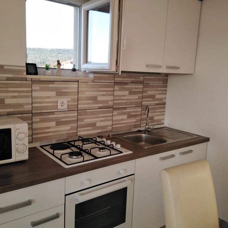 Spokojne wakacje z pięknym widokiem? Jesteśmy tutaj :) Mieszkanie znajduje się w miejscowości Ražanj koło Rogoznicy. Całe piętro tylko dla Ciebie składa się z dwóch sypialni, kuchni z jadalnią, łazienki oraz tarasu z pięknym widokiem na morze. Parking znajduje się na podwórku, bezpłatne WiFi i możliwość grillowania. Idealny dla czterech gości. Do plaży jest zaledwie 200 m pieszo. Primosten oddalony jest o 20 minut, a Trogir o 30 minut jazdy samochodem. We wsi znajduje się sklep i kilka restauracji, które oferują dania kuchni śródziemnomorskiej. Codzienna dostawa pieczywa, owoców, warzyw i świeżych ryb przed dom.