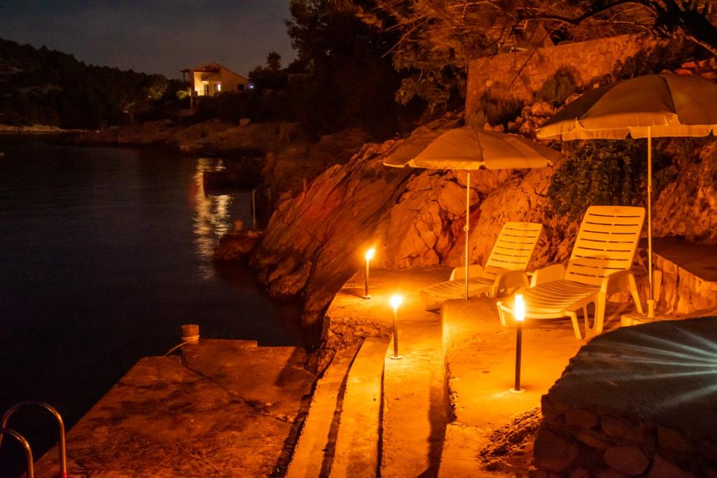 Dom Adriana położony jest w cichej zatoce bezpośrednio nad morzem z pięknym widokiem i tarasem. Dom jest wyposażony we wszystko, czego potrzebujesz na rodzinne wakacje i nie tylko. Wszystko jest bardzo czyste i zadbane. Z każdego okna rozciąga się piękny widok na morze. Sprzedawcy przychodzą codziennie ze świeżym chlebem, ciastami i rybami. W odległości kilometra znajduje się pierwszy sklep. Gospodarze to „ludzie na miejscu”. Powitano nas pensją powitalną, rejsem łodzią i pożegnalnym prezentem. Dom posiada własne miejsce do kąpieli i wypoczynku na słońcu oraz własne leżaki. Wszystkie zalecenia dotyczące pobytu w tym obiekcie.