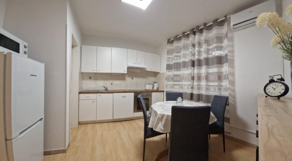 Apartament znajduje się na parterze budynku mieszkalnego, co zapewnia dogodny dojazd. Wnętrze jest nowocześnie urządzone, co pozwala na pobyt o każdej porze roku: przestrzeń jest klimatyzowana dwoma klimatyzatorami, a na chłodniejsze dni dostępne jest ogrzewanie podłogowe. Dla zapewnienia dodatkowego komfortu i prywatności wszystkie okna wyposażone są w rolety i moskitiery. Lokalizacja jest doskonała dla miłośników spacerów: do plaży można dojść w zaledwie 10 minut, a do centrum miasta w 15 minut. W bezpośrednim sąsiedztwie znajdują się wszystkie niezbędne udogodnienia, takie jak sklepy, komunikacja miejska, apteki, szpitale, centra handlowe, kawiarnie itp. Budynek posiada własny, bezpłatny parking dla mieszkańców i gości. Parking nie podlega wcześniejszej rezerwacji, ale ponieważ jest on częścią budynku, znalezienie miejsca jest łatwiejsze.