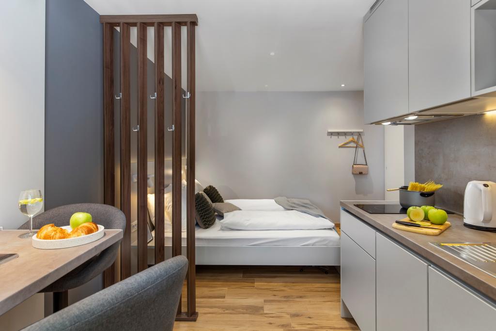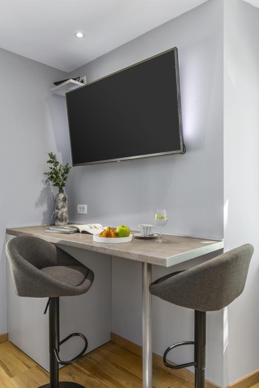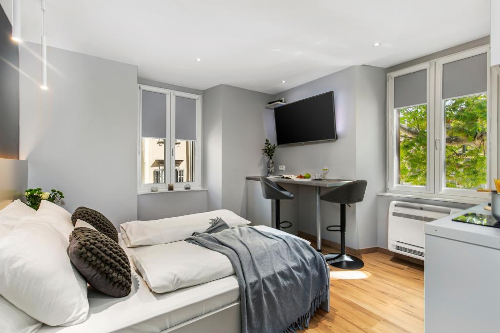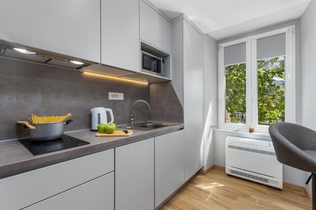 Apartamenty InCenter Rijeka znajdują się w samym centrum Rijeki, tuż obok Korzo, w idealnej lokalizacji dla gości, którzy chcą być blisko wszystkiego i zwiedzać miasto pieszo. Apartamenty typu studio w centrum Rijeki – samodzielne zameldowanie, tuż obok Korzo Nasze nowocześnie urządzone studio jest idealne dla par, podróżujących samotnie i gości biznesowych poszukujących wygodnego, praktycznego i łatwego pobytu w centrum miasta. Dużą zaletą jest samodzielne zameldowanie za pomocą kodu PIN, które pozwala na szybki, elastyczny i bezstresowy przyjazd. Apartament oferuje wszystko, czego potrzebujesz do przyjemnego pobytu: łóżko king-size i przyjemną otwartą przestrzeń; w pełni wyposażoną kuchnię ze zmywarką, lodówką, kuchenką mikrofalową, czajnikiem, ekspresem do kawy i przyborami kuchennymi; nowoczesną łazienkę z kabiną prysznicową i suszarką do włosów; klimatyzację, telewizor z MaxTV, IPTV, Netflix i szybkim Wi-Fi; parking; w pobliżu restauracje, sklepy, komunikacja miejska i główne atrakcje miasta zaledwie kilka kroków od apartamentu. Apartament znajduje się na 2. piętrze bez windy. Jeśli szukasz nowoczesnego apartamentu typu studio w centrum Rijeki, z doskonałą lokalizacją, łatwym dojazdem i wszystkim, czego potrzebujesz na krótki lub służbowy pobyt, InCenter Apartments to doskonały wybór. Wirtualny spacer Google 360 i więcej informacji: www.incenter.com.hr