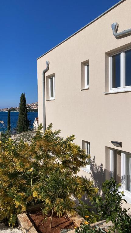 W obiekcie HELENA do wynajęcia jest tylko dolny apartament z tarasem. Podczas Państwa pobytu goście są jedynymi gośćmi w obiekcie, a właściciel okazjonalnie odwiedza piętro. Nasz apartament charakteryzuje się nowoczesnym designem, komfortem i starannie przemyślanymi detalami, tworząc przyjemną atmosferę, w której każdy może poczuć się jak w domu. Obiekt jest w pełni wyposażony we wszystko, co niezbędne do relaksującego i beztroskiego wypoczynku, a przestronny taras z widokiem to idealne miejsce na poranną kawę, rodzinny obiad lub spokojne wieczorne chwile. Dokładamy wszelkich starań, aby zapewnić każdemu gościowi ciepłe powitanie, indywidualne podejście i nienaganną czystość, a także przydatne wskazówki dotyczące plaż, restauracji i wycieczek w okolicy – wszystko po to, aby Państwa pobyt był niezapomnianym przeżyciem. Apartament znajduje się w drugim rzędzie od morza. Plaża jest oddalona o 40 metrów. Najbliższy sklep znajduje się 5 minut jazdy samochodem w sąsiedniej miejscowości Stupin Čeline. W miejscowości Rogoznica, oddalonej o 10 minut jazdy samochodem, znajdują się liczne sklepy, targ, plaże, kościół, przystań i wiele innych atrakcji.
