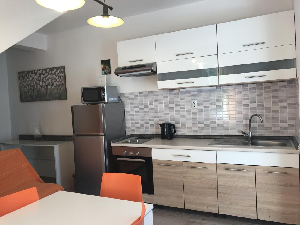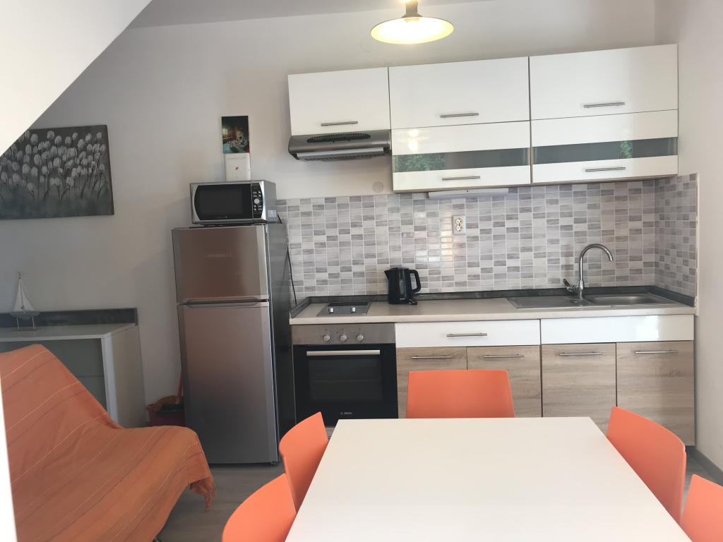 Całkowicie nowoczesne i nowo wyposażone apartamenty, położone w pierwszym rzędzie do morza. Obiekt położony jest 10 metrów od plaży. W pobliżu obiektu znajduje się wiele pięknych plaż z dodatkowymi udogodnieniami. Obiekt posiada możliwość korzystania z kominka oraz własnego parkingu. A1 to apartament jednopokojowy z kuchnią, jadalnią i salonem z rozkładaną sofą. 130x200 cm. Znajduje się na parterze i posiada duży taras w ogrodzie. Parking A2 to apartament typu studio. Znajduje się na parterze i posiada taras w ogrodzie. Ma widok na morze. Parking. A3 to mieszkanie dwupokojowe. W pokoju rodziców znajduje się łóżko. 160x200 cm, w pokoju dziecięcym znajduje się podwójne łóżko. 130x200 cm i posiada duży salon z rozkładaną sofą. 150x200 cm. Znajduje się na pierwszym piętrze i posiada duży taras z pięknym widokiem na morze. Zapewniony parking. A4 to dwupokojowe mieszkanie z kuchnią i salonem. Apartament znajduje się w Orzemlje i posiada balkon z widokiem na morze oraz taras w ogrodzie. Parking